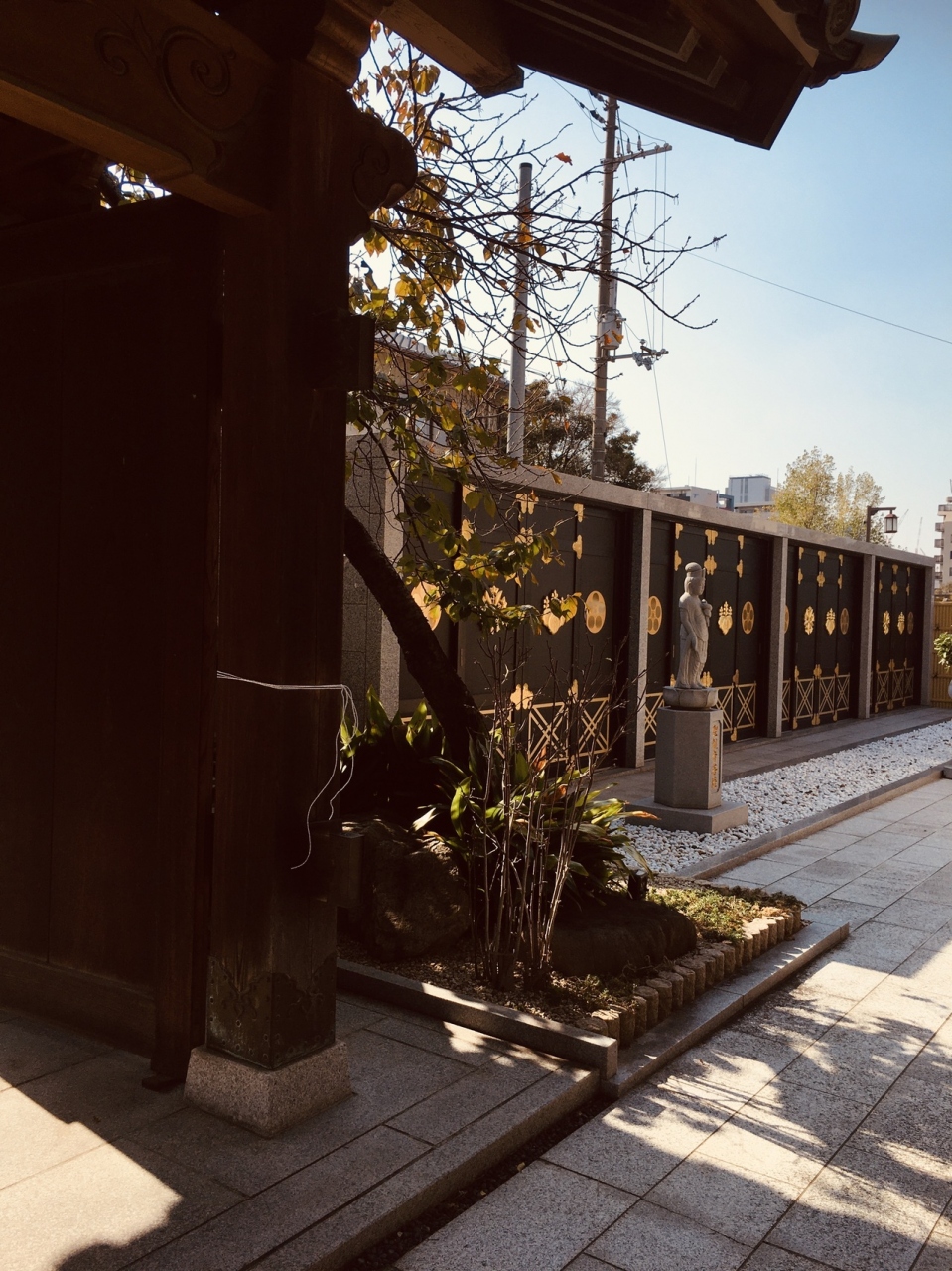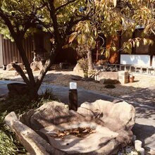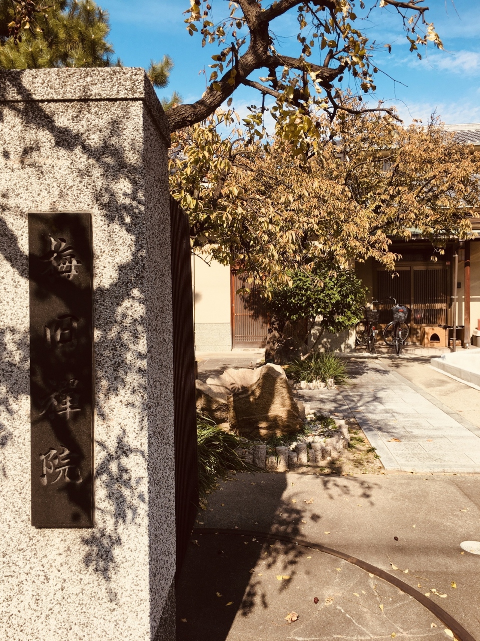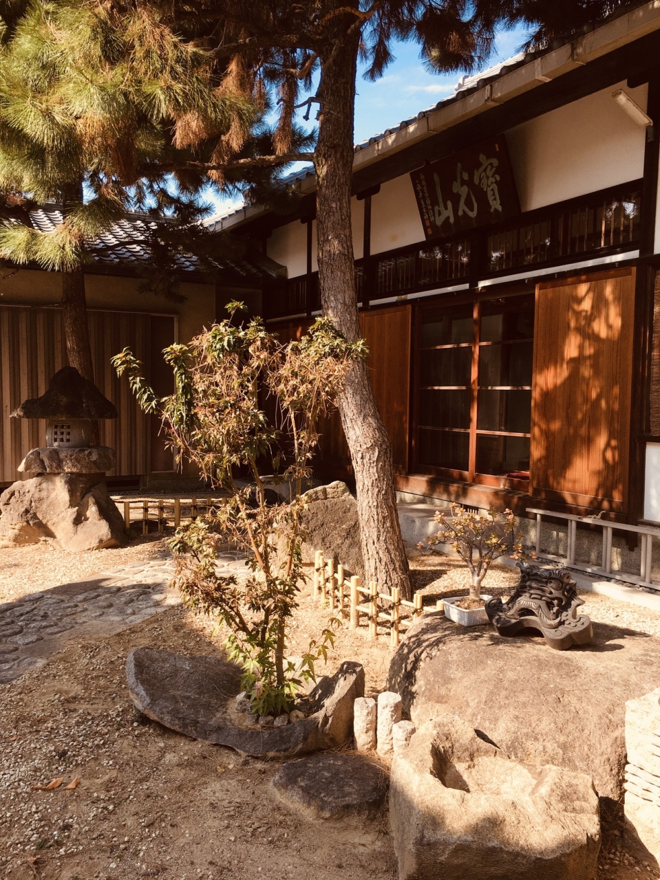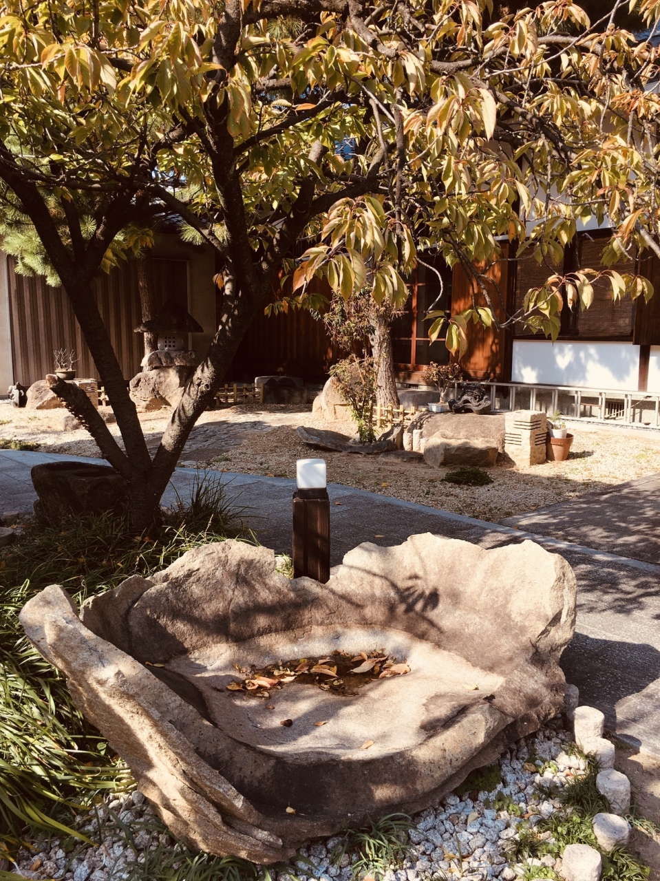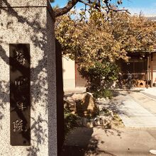 境内に入ると石の道が建物まで伸びていて本堂のようでした。ところどころ地面には砂利が散りばめられていて、大きな石がいくつか置いてあり綺麗な庭を形成していました。白い砂利の上に小さな聖観音菩薩が建っていました。