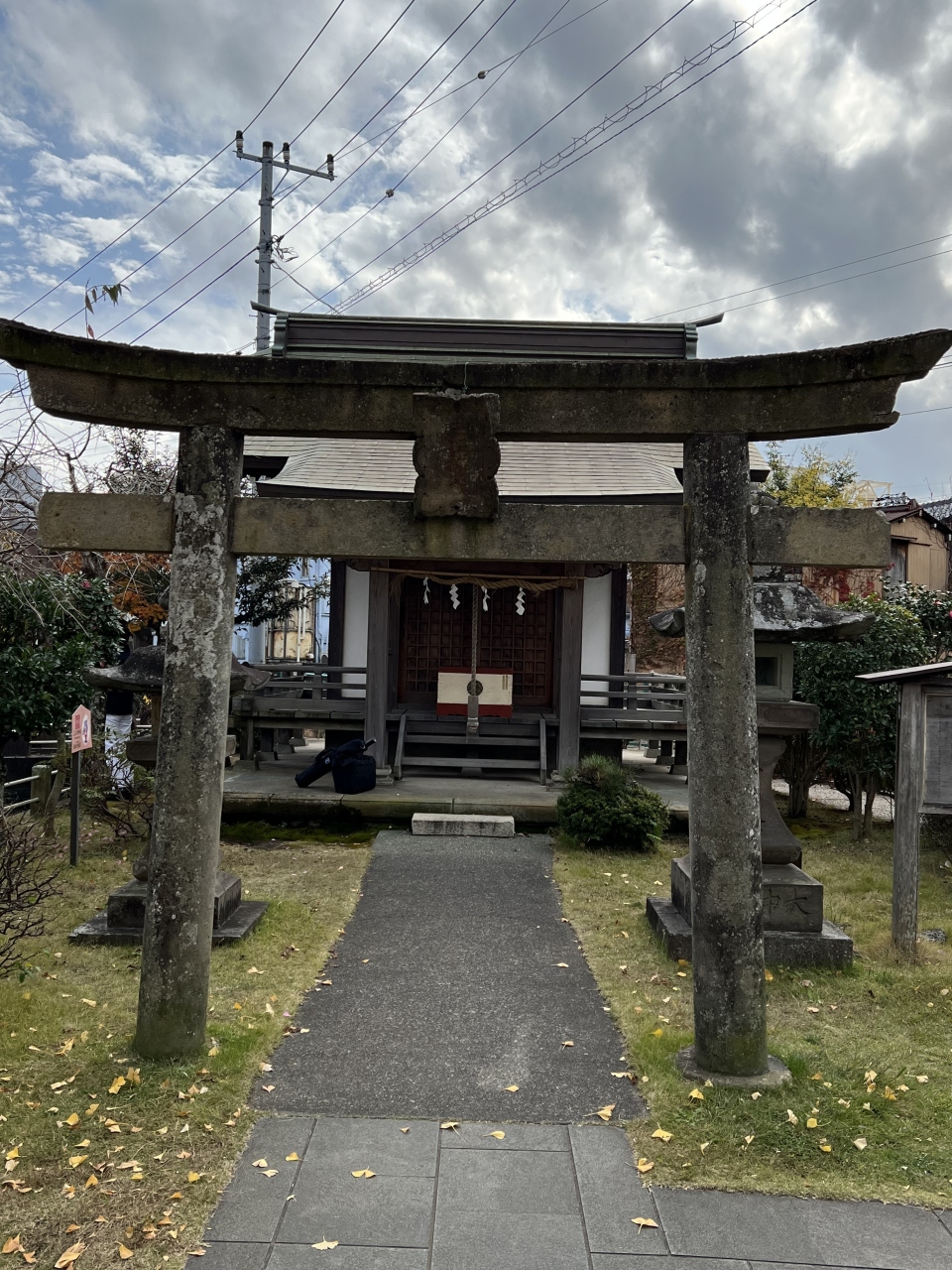 いつも陽の光を正面に受けて輝いている社も今日は冬の景色になっていました。