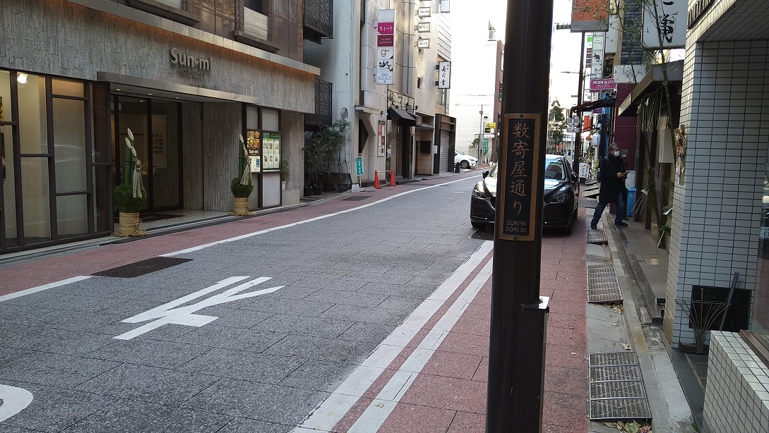 中央区銀座の数寄屋橋公園から新橋方面へ南北に通る道で銀座5丁目から6丁目まで約240m続いています。昭和33年(1958年)、首都高速道路が建設されるまでは、外濠があったので、外濠沿いに通っていました。現在は飲食店の並ぶ通りとなっています。