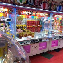 ゲームセンターがはいっています。とくにクレーンゲームがたくさんあるので子供やカップルに人気です。