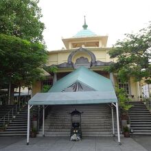 通りからはインド様式の本堂が見えて、東京だと築地本願寺のイメージとダブりますね。戦後、今の沖縄県土木建築部の事務所が置かれた時期もあるようです。