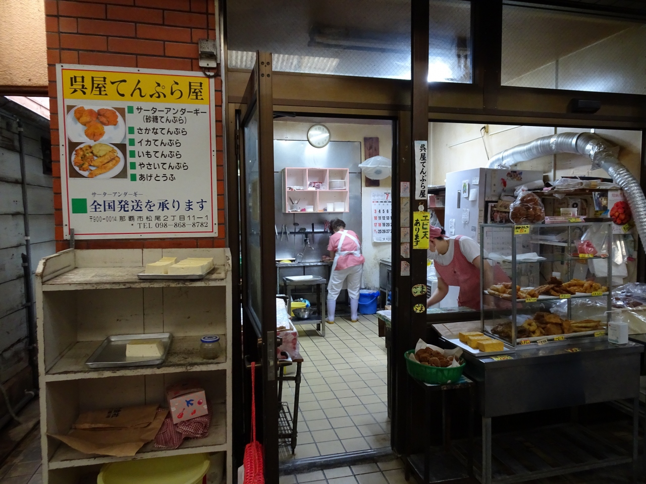 かりゆし通りは、市場本通りの西側。牧志公設市場との間辺りのエリア。工事中の建物があったりするのでそれもあるのかもしれませんが、妙にディープな雰囲気。古い市場の感じが残っているんでしょうかね。その辺りでお勧めは、呉屋てんぷら。隠れた人気店ですが、サーターアンダギーの味は本物。香ばしくてくせがない正統派のおいしさです。