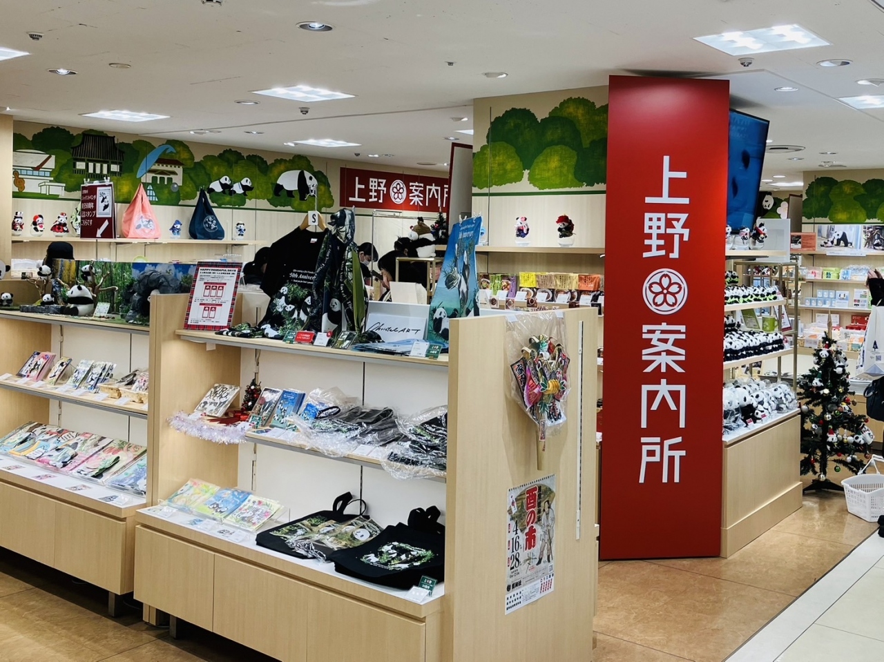 上野松坂屋の2階に上野案内所があります。以前は地下1階にありましたが、現在は2階に移動。案内所ではありますが、上野案内はもとよりパンダグッズがとっても充実しています。アーティストが描いたパンダのポストカードなどがお薦めです。