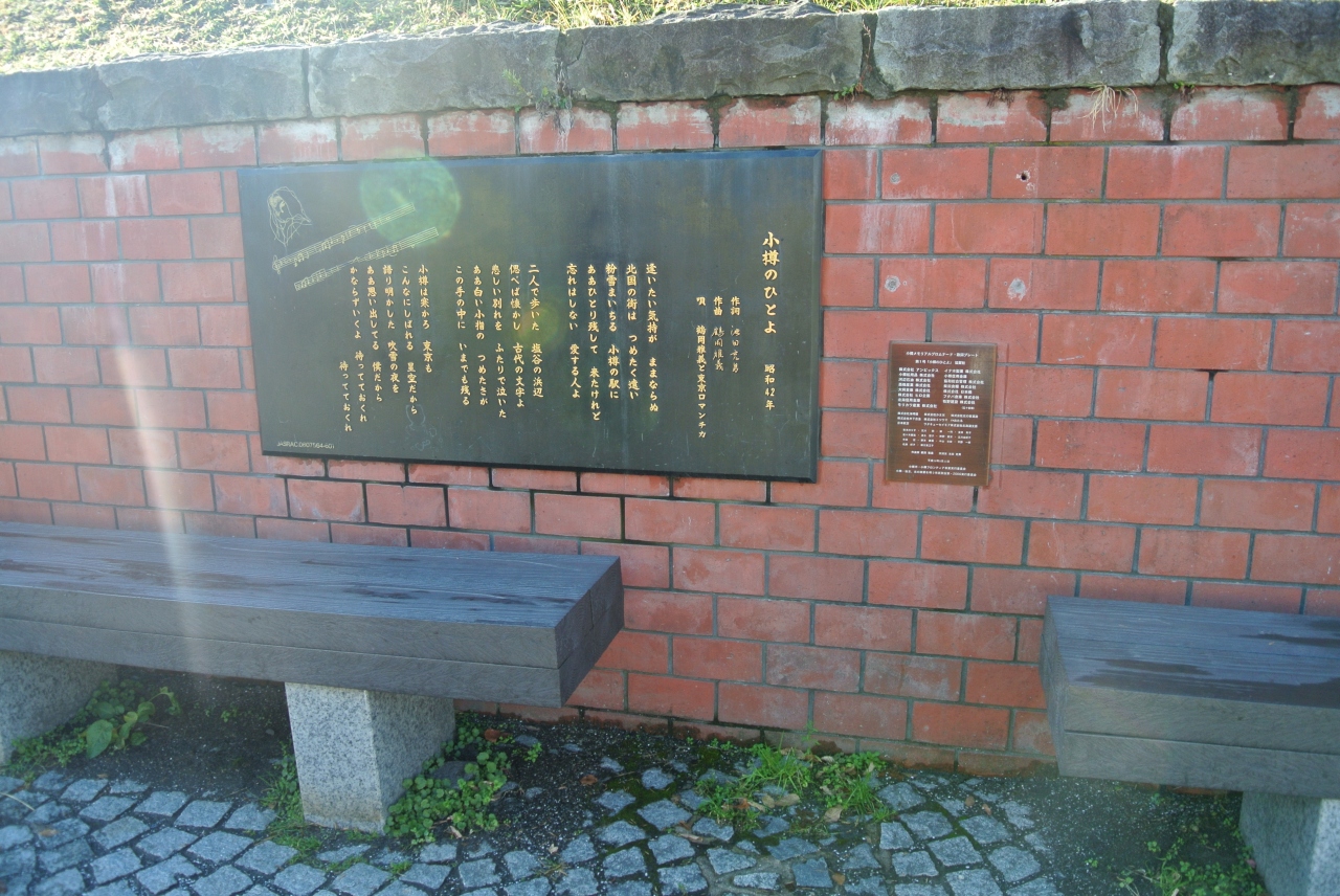 運河の横の遊歩道の壁に1番から3番までの歌詞が刻まれたプレートが掲げられていました。小樽のご当地ソングですね。年代的に知らない人も多いとは思いますが、なぜか今でも一番だけは歌詞もしっかり覚えていて歌えます。