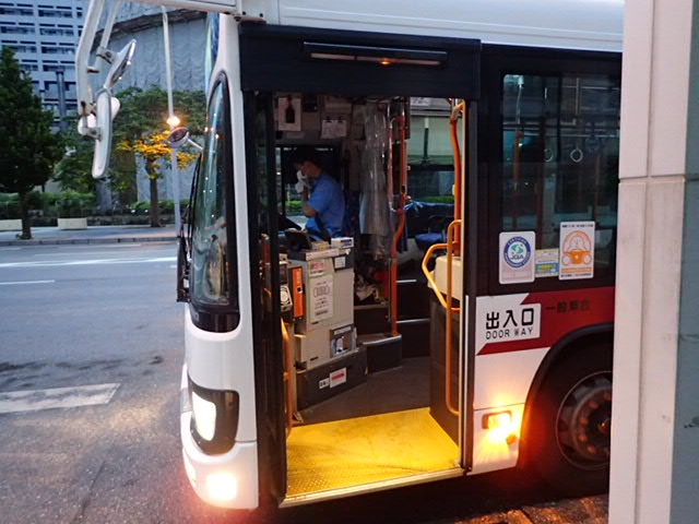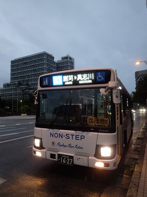 沖縄県内を北から南まで網羅する路線バスの運行と、沖縄観光の核となる観光バスを運行しています。今回は、那覇の県庁そばのバス停から、具志川方面に行く路線を利用しました。バスは乗り降りがしやすいノンステップでした。