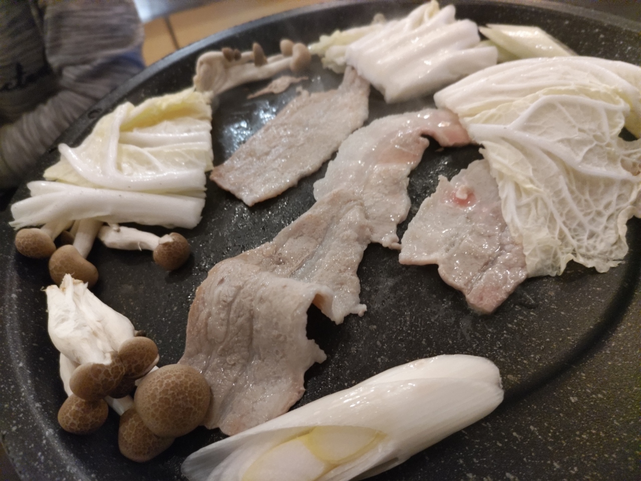 今回はアグー豚のしゃぶしゃぶを注文。せいろ蒸し・普通のしゃぶしゃぶ・焼きしゃぶしゃぶと大きく3つ。焼きしゃぶしゃぶにしました。アグー豚肉のみセット4000円くらい。あとは和牛付きのセットありましたが、豚セットのみのしました。提供された時ちょっと量的に少ないかなと思いましたが、意外とお腹いっぱいだったのですセット肉のハーフタイプがあったのでそれを追加注文致しました。初しゃぶしゃぶ焼き体験。豚肉の独特の匂いも無く脂身もおいしく満足。野菜等々も付いております。店内は手前側が5組くらいのスペース。テーブル席が3席だったような・・あとは一段上になりますが畳みの席があります。駐車場はちょっと運転が苦手な方は止めにくいかも・・・(画像が添付出来ないのが残念)