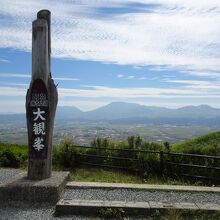 阿蘇の山の北の方にある展望台です。別府方面から来ると、ここまで平地の上を走っていて、ここから先がくぼんでいて、その先に阿蘇が見えます。阿蘇の地形は、山の周囲の土地が落ち込んでできたと言われており、そのことがよく分かります。