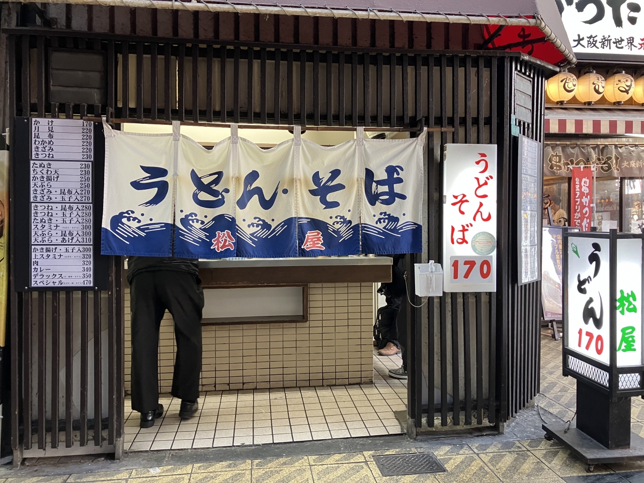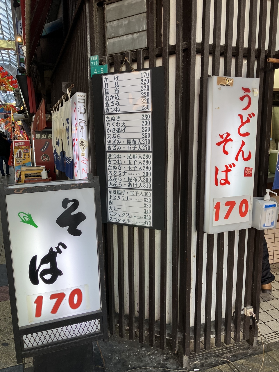 ジャンジャン横丁入口170円さぬき松屋、天ぷらうどん250円美味い
