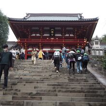 鶴岡八幡宮は鎌倉を代表する神社で、鎌倉幕府の初代将軍である源頼朝ともゆかりのある神社です。鎌倉駅からは歩いて15分ほどですが、途中の小町通りの商店街などを見て歩いて行くと距離の長さを感じません。平日の昼頃に訪れましたが、多くの人出と修学旅行生などが混ざり混雑していました。この人出は大河ドラマの影響でしょうか。外国人もちらほら見かけました。