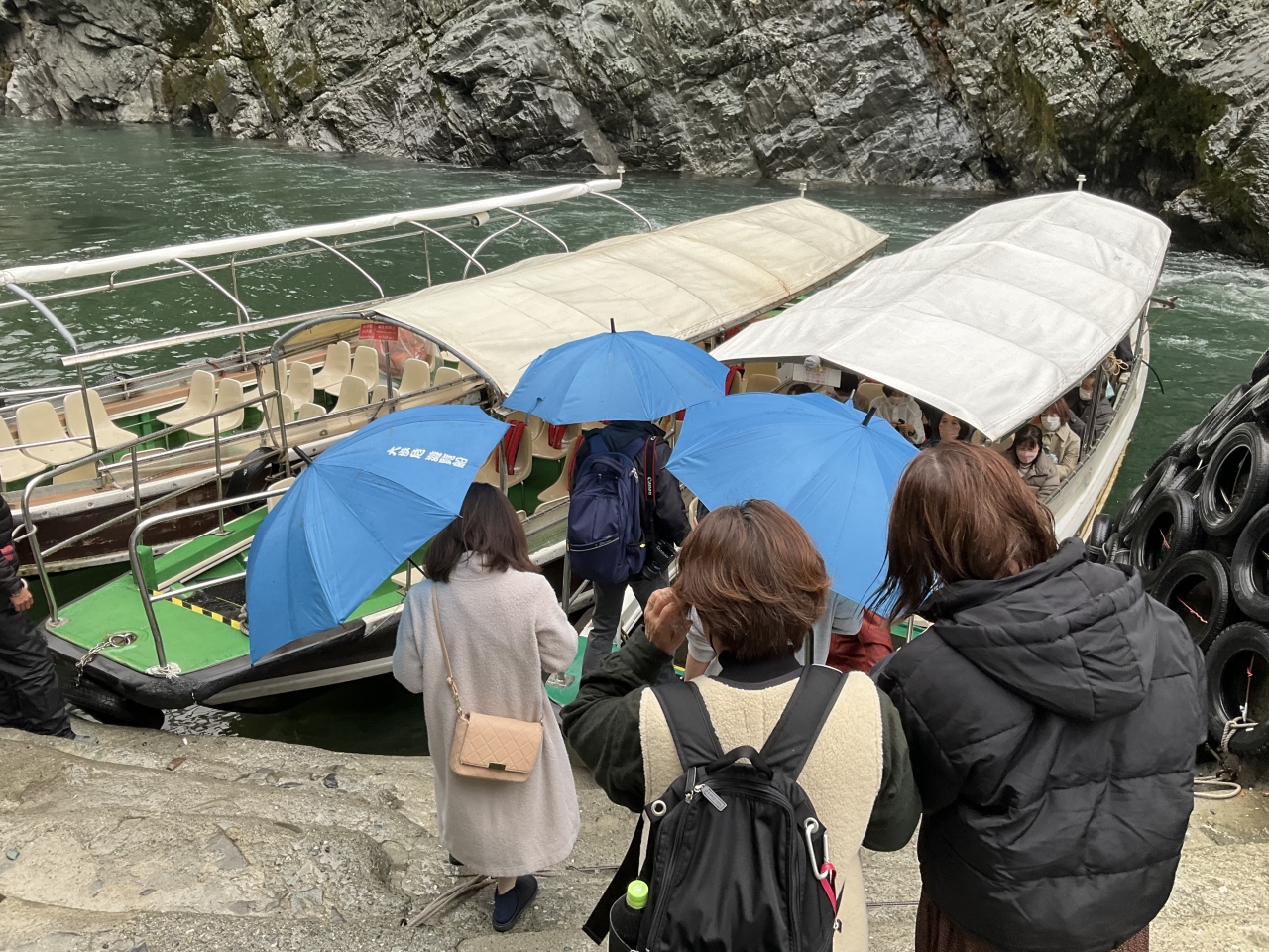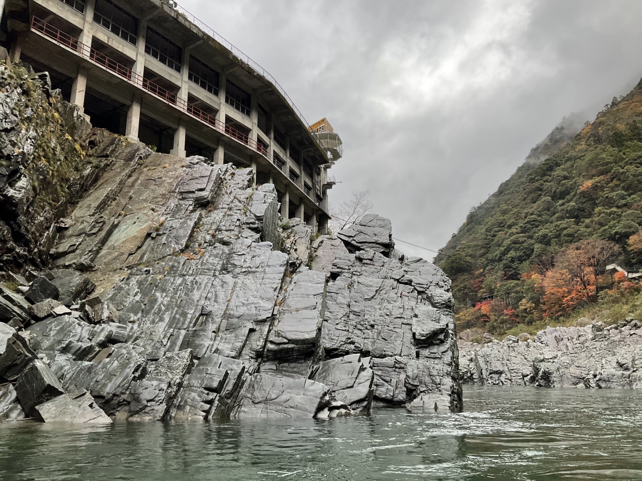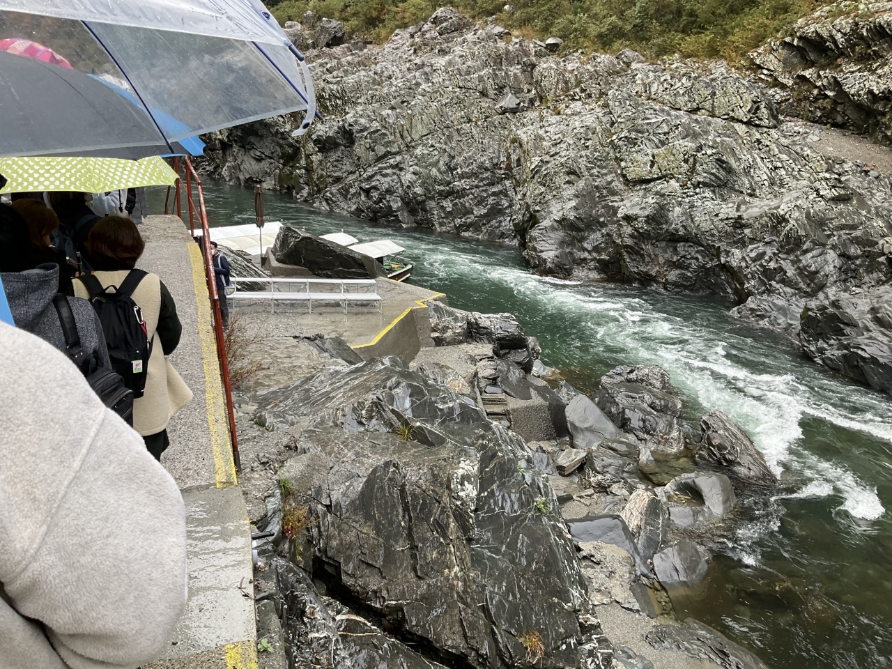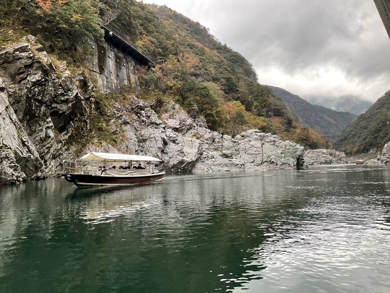 11月の祝日の日帰りツアーに参加。朝から雨でしたが、遊覧船乗船時には雨が止みラッキー。遊覧船の航行は、当地の天気より吉野川の水量が出航の可否に関係あるとか。渓谷内を小舟で航行しますが、両岸の岸壁と国道と土讃線の景色は見応えあります。桜や紅葉のシーズンは終わりで天気も悪かったですが、渓谷美は十分来た甲斐はありました。