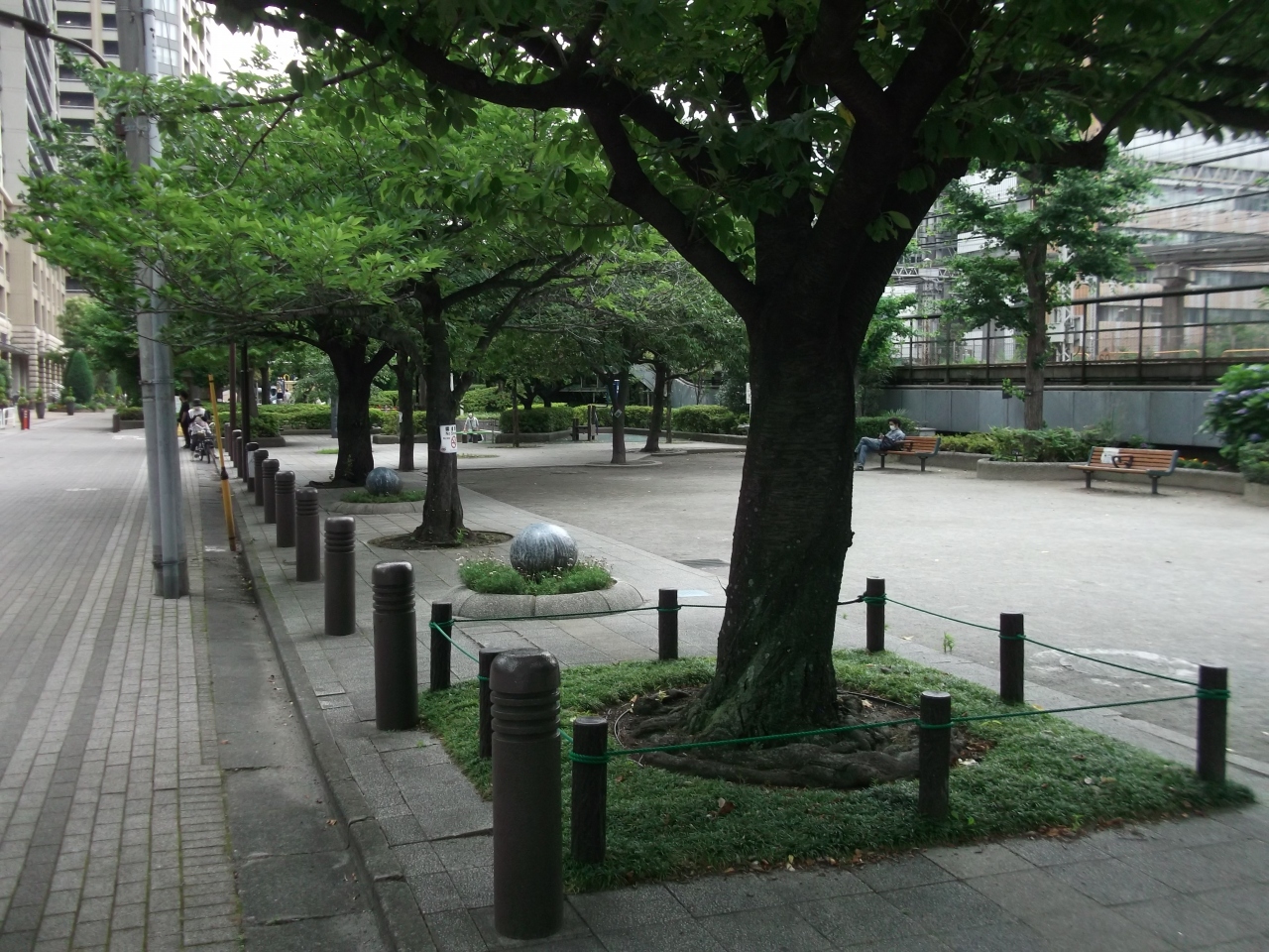 地下鉄三田駅から歩いて3分ほど、JRの線路沿いにある細長い形の公園です。特に何があるというわけではなく細長い広場とベンチ、さらに先には子供用遊具があるぐらいです。それでもオフィスから出て外の空気を吸い、気分転換をするのには良さそうなところです。