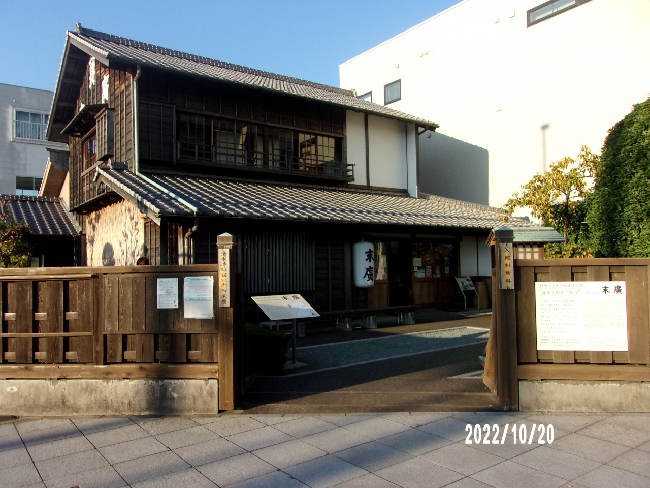 この清水港船宿記念館・末廣は巴川にかかる港橋のたもとにあります。JR東海道線清水駅から南に25分程度のところにあります。この船宿は清水港の波止場にあったものを復元したのです。その時に内部の柱など一部はかつての船宿のものを使用したとのことです。間取り等は当時の姿を再現しています。内部は資料などが置かれています。またお土産なども販売しています。