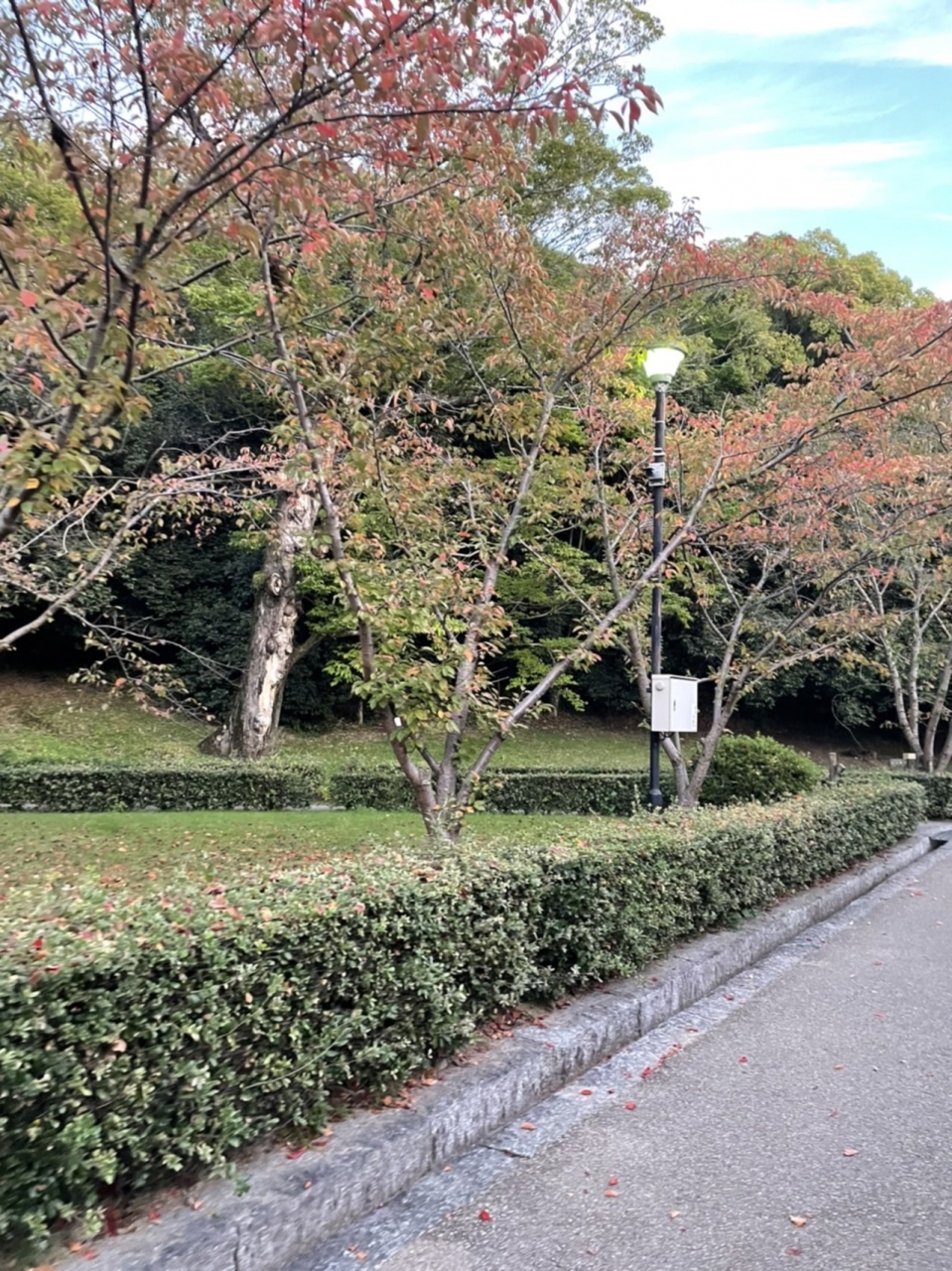 また公園内の紅葉もはじまっており、様々な樹木が鮮やかにいろづいていました。手入れも行き届いていて樹木もきれいにカットされていてきもちがよいです。