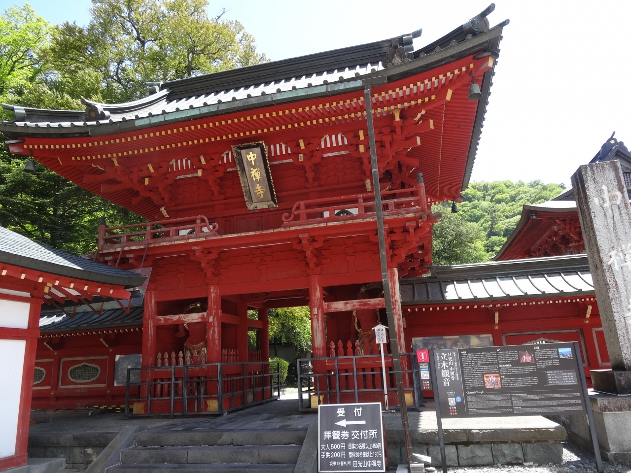 観光のメインとなるバスターミナルからは、中禅寺湖のほとりを歩いて行けます。少し距離がありますが、中禅寺の名のもとのなる由緒ある寺院です。朱塗りの門が道路沿いから見えるので、迷わずともすぐにわかります。有料で内部に入れます。