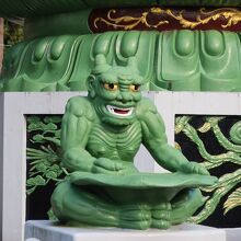 座周りには、緑のゴブリンや赤の獅子や鶏像があってこちらも面白い。