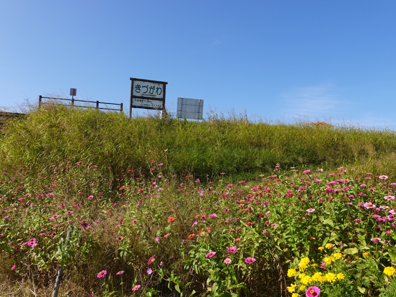 八幡市の名所である流れ橋(上津屋橋)を訪れました。流れ橋は木津川に架かる橋のひとつですが、10月下旬の晴天続きの日だったこともあるためか、橋のたもとからは木津川の川面がほとんど見えませんでした。視界に入るのは雑草ばかりで、一番印象的だったのは堤防に咲く鮮やかなコスモスの花でした。