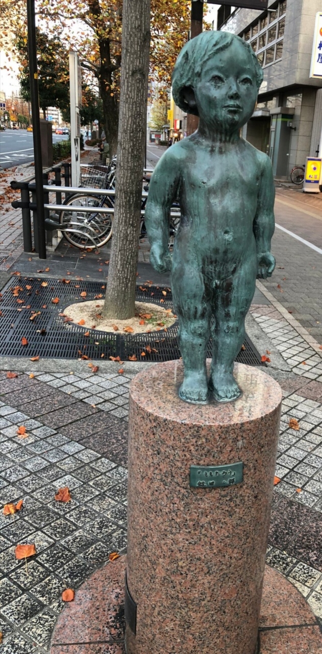 桃太郎の像はどこだろう?とさがしたら小さな子供のような像でした。いわゆる昔話ででてくる鬼退治へむかうときの桃太郎の姿とはかけ離れたものでぱっと見ふつうの子供の像なのでこれ、桃太郎なの?とちょっとびっくりでした。