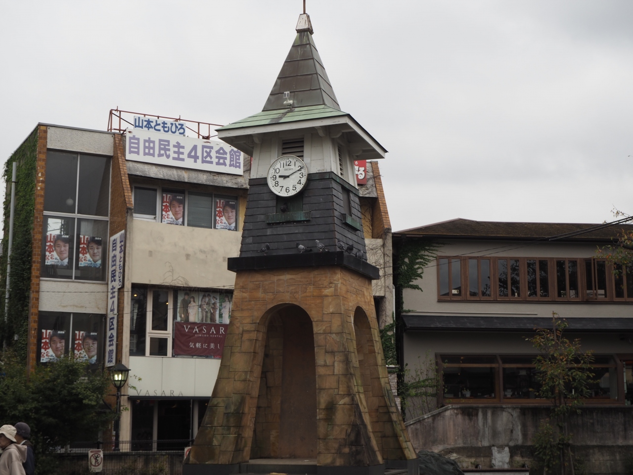 鎌倉駅の西口の駅前広場を出て右側に鎌倉駅旧駅舎時計台があります。とんがり屋根の建物で中上部に時計盤があります。時計は現役のもので、時計盤は現在も時間を刻み込んでいます。よく目立つ構造物なので集合場所などの目印にもいいようです。