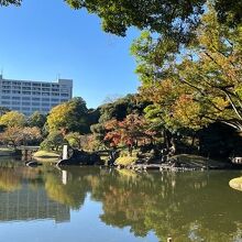 琵琶湖を見立てて作られた大泉水があり都会のオアシスです。