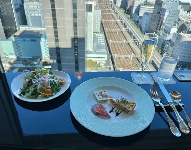 窓に面した席で21階からの景色を眺めながら食事しました。