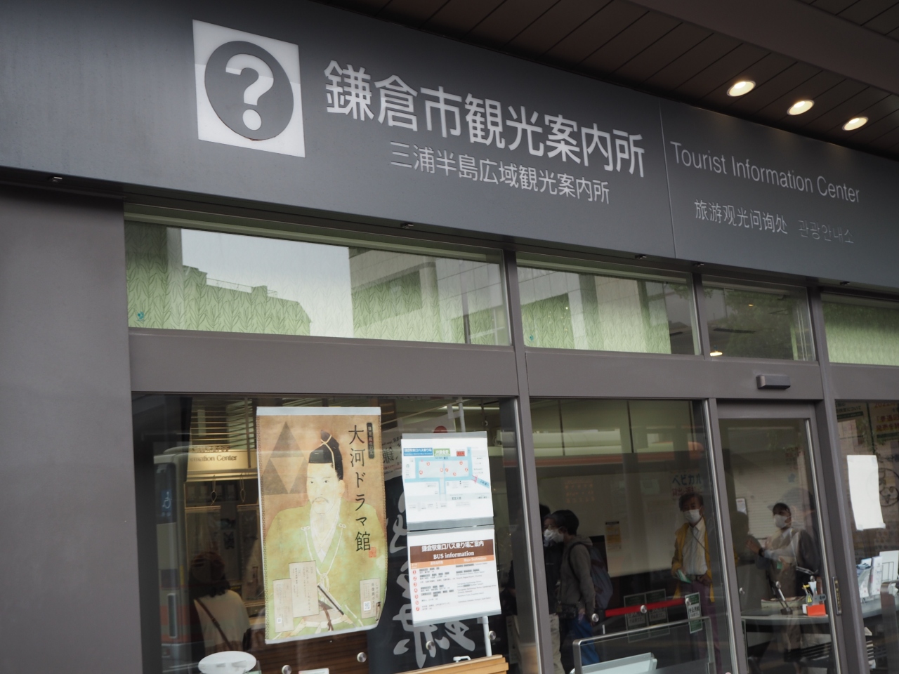 JR鎌倉駅の改札を出てすぐ左に鎌倉市観光総合案内所はあります。ガラス張りの利用しやすい感じの案内所です。観光都市である鎌倉らしく観光用マップやパンフレットなどの資料は豊富にそろっています。外国語パンフレットもあり、海外からの今後の旅行再開が待たれる状態です。
