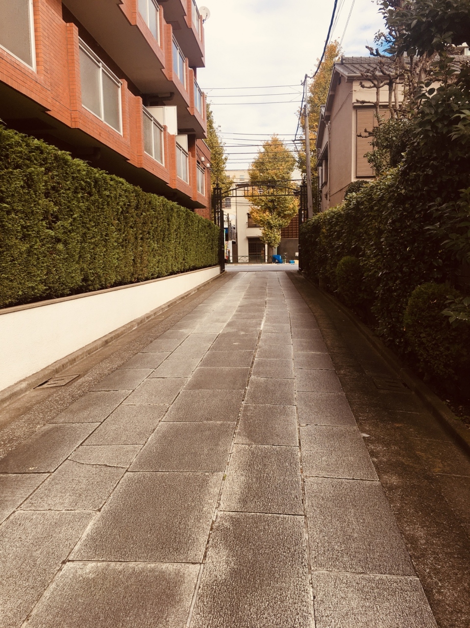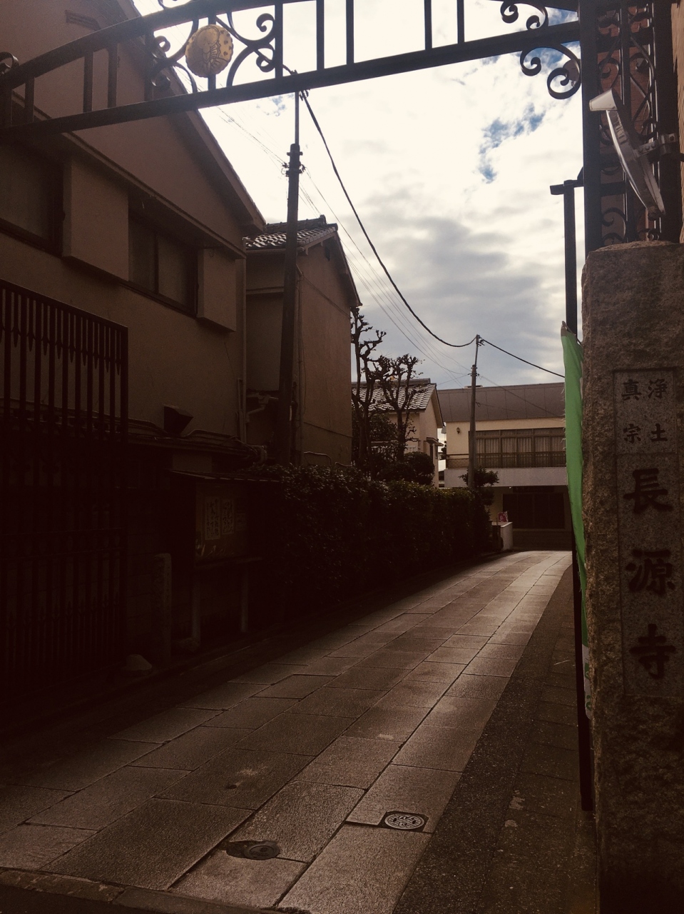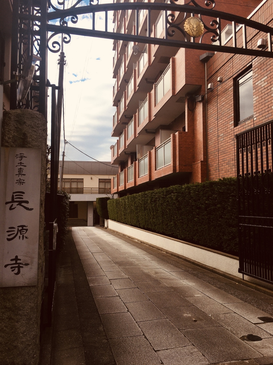 境内入ると石の道が伸び、右側にはマンションが建っていました。参道左右の草木が綺麗に刈ってあるのが印象に残りました。左側には掲示板と石碑があり、本堂は2階建の寺らしくない建物でした。本堂の左側が墓地になっています。