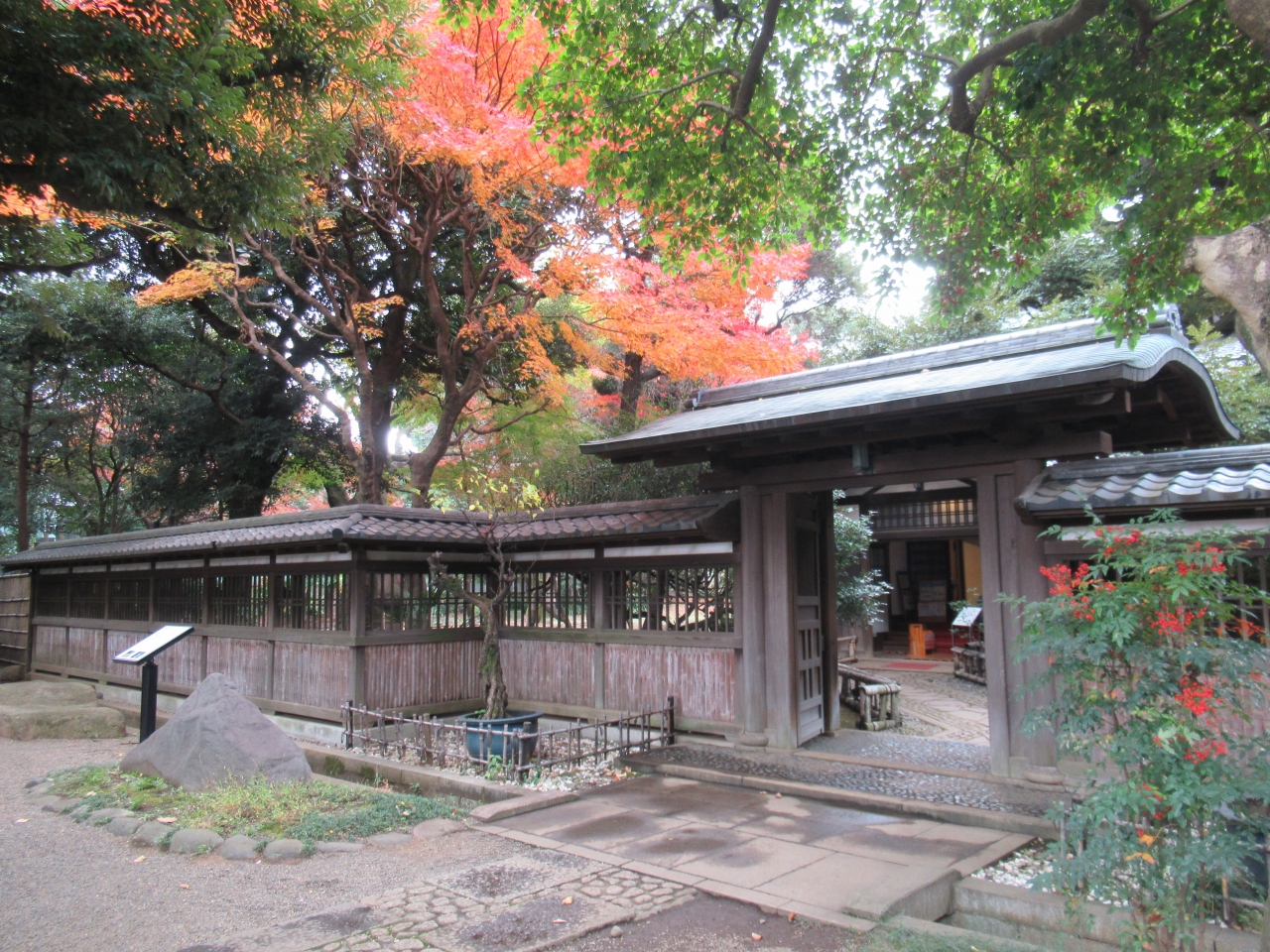 京王井の頭線・駒場東大前駅西口から8分ほどのところに造られた、広々とした緑豊かな公園です。加賀藩の16代当主だった前田利為侯爵の駒場邸跡に造られた公園で、園内には化粧レンガやタイル張りされ、大理石やスクラッチタイルで装飾された洋館や、40畳ほどある和室に欄間の透かし彫りや床の間、付書院などがある広間と池泉庭園がある和館、明治以降の文学者の資料を保存している日本近代文学館などが建っています。訪れた時は木々の葉も紅葉していて、のんびり散策が楽しめました。洋館、和館は無料で見学できました。