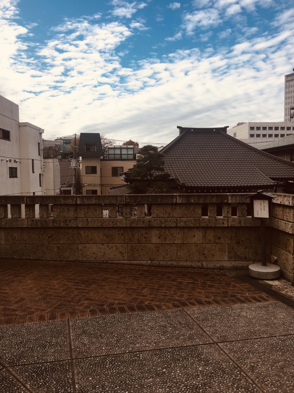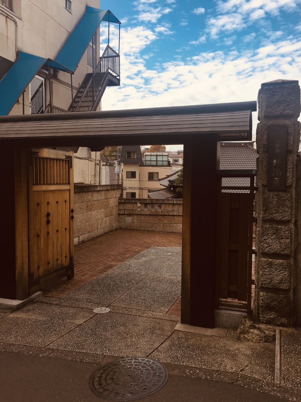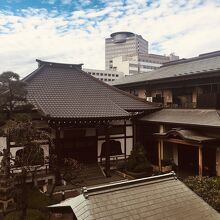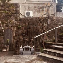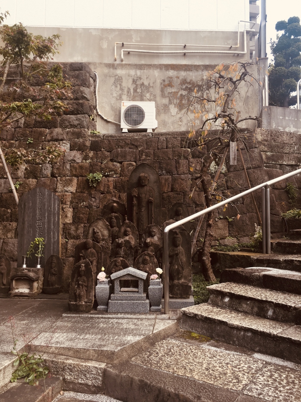 人通りがある道沿いにありましたが、境内入ると静かでした、階段を降りることとなります。上からは寺の全景を見渡せ、階段沿いには年季ある地蔵さまが並んでいました。整備された庭で本堂は大きく、本堂を囲むようにして墓地がありました。