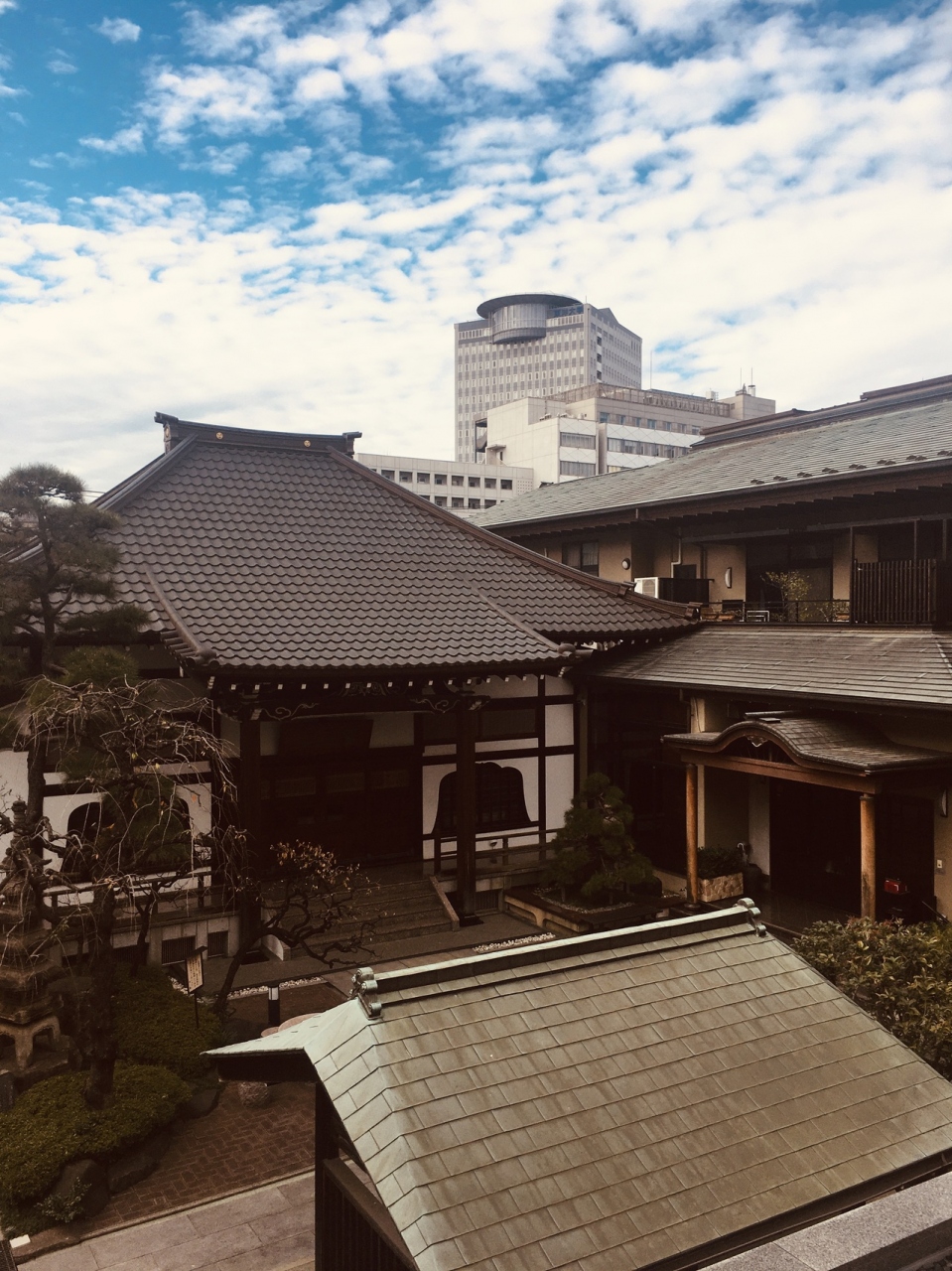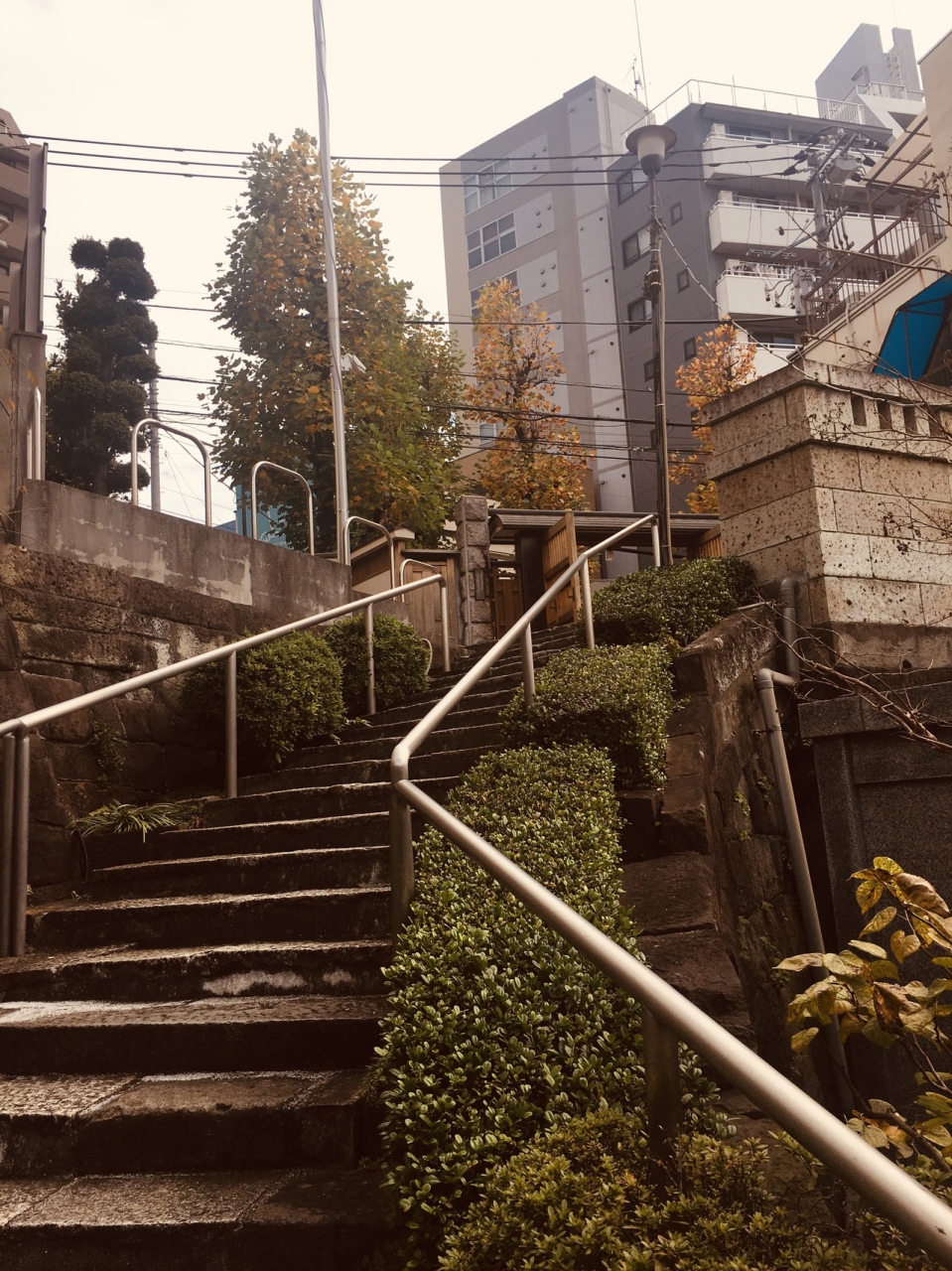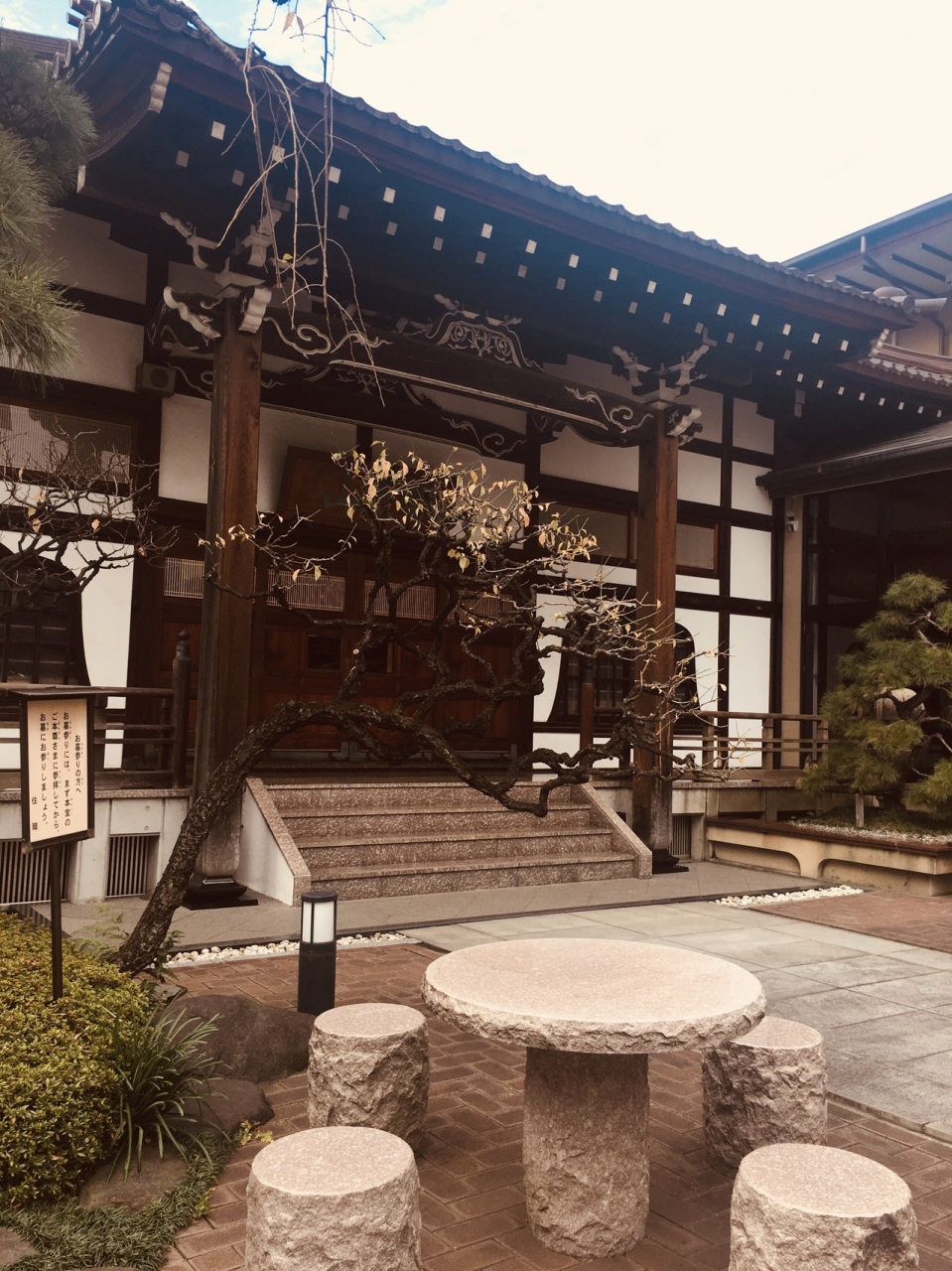 人通りがある道沿いにありましたが、境内入ると静かでした、階段を降りることとなります。上からは寺の全景を見渡せ、階段沿いには年季ある地蔵さまが並んでいました。整備された庭で本堂は大きく、本堂を囲むようにして墓地がありました。