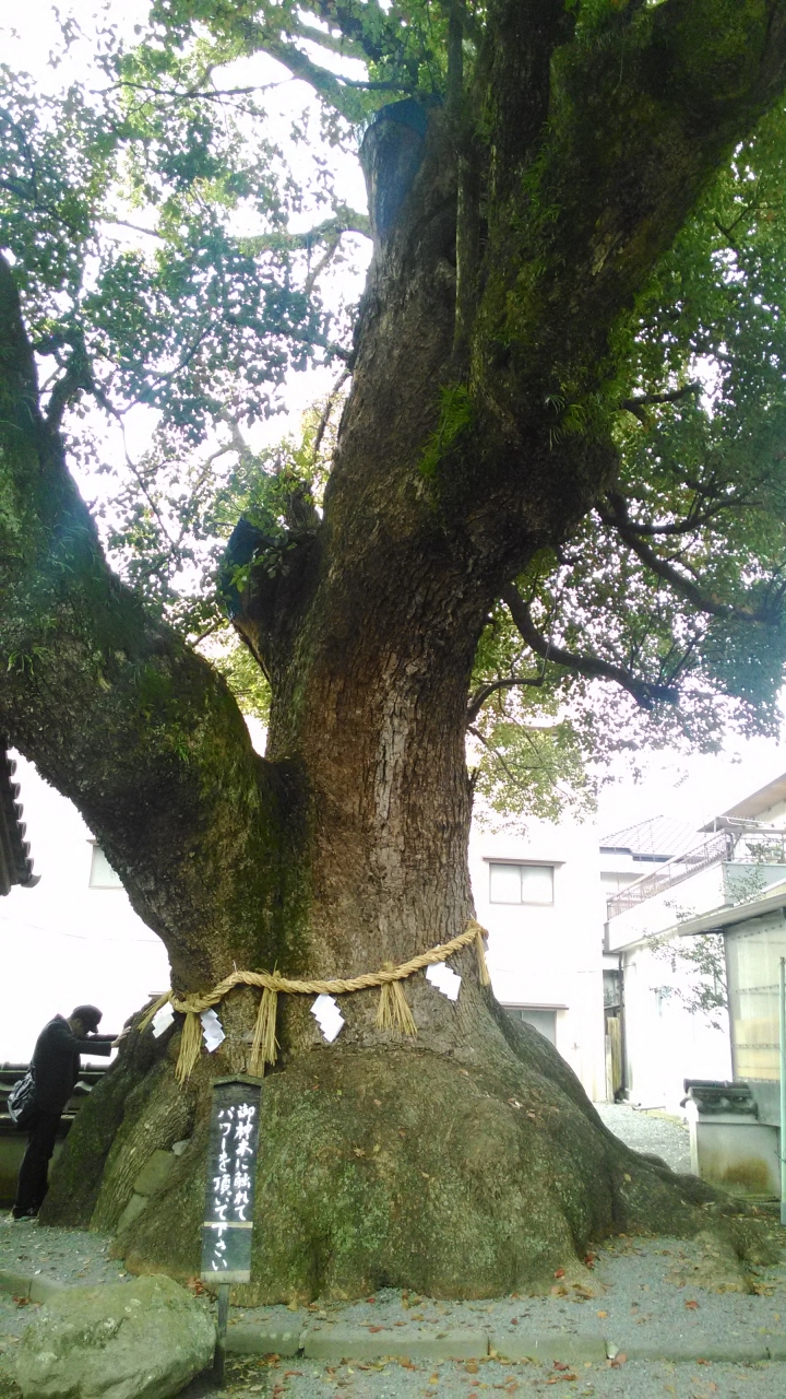 粉河観音宗・総本山「粉河寺」最古の建造物となる朱塗りの楼門「大門」の門前に鎮座し、祭神として「天照皇大神」を祀る境内面積がおよそ330平方メートルの小規模な神社です。コンパクトな境内の『大神社』には、パワースポットとして存在感のある樹齢1000年余りと推定される御神木の「クスノキ」がありました。