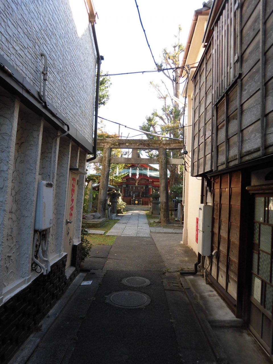 秋葉神社は向島の水戸街道から少しだけ奥まった住宅街に入った場所にあります。社殿はゆるやかな屋根の形状や色合いなど、趣が感じられて素敵な神社だと思います。境内には歴史を感じる古い石灯籠もあって、隠れたパワースポットだと思いました。