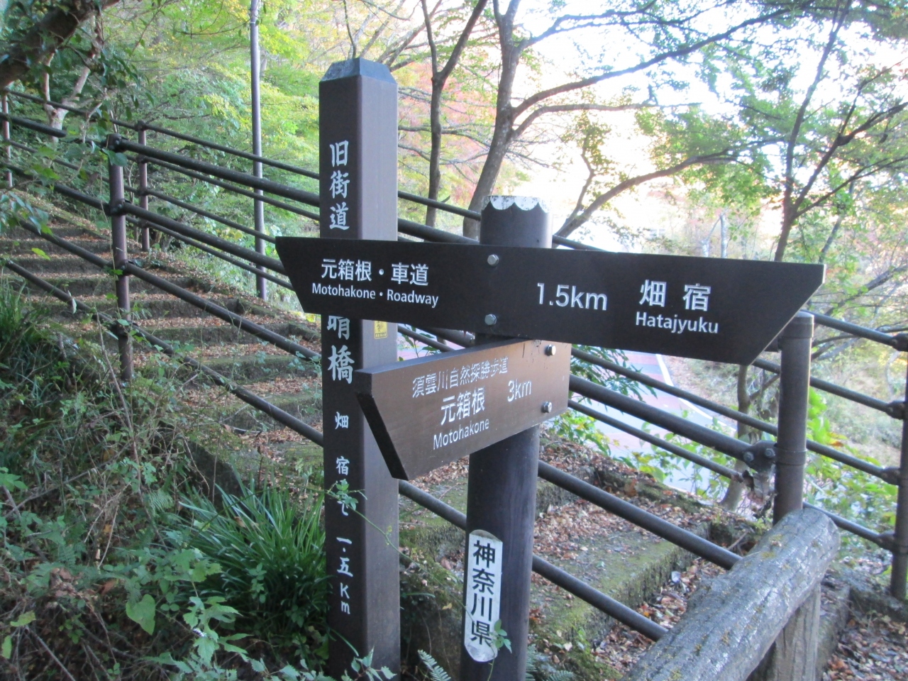 県道732号線に沿った箱根湯本から途中畑宿等を通って元箱根までの旧街道が須雲川自然探勝歩道となっています。7年前は箱根湯本から元箱根まで登りましたが、今回は屏風山登山の後、南の登山口から畑宿まで歩きました。再現された石畳、出来たときの石畳、江戸から23番目の一里塚、甘酒茶屋、江戸時代の旅の様子、旅の装束、道具、模型、東坂の原風景写真等が展示している旧街道資料館、おもしろい名のついた急坂等多くのスポットに出会い、またそれによって歴史を感じることのできる自然探勝道です