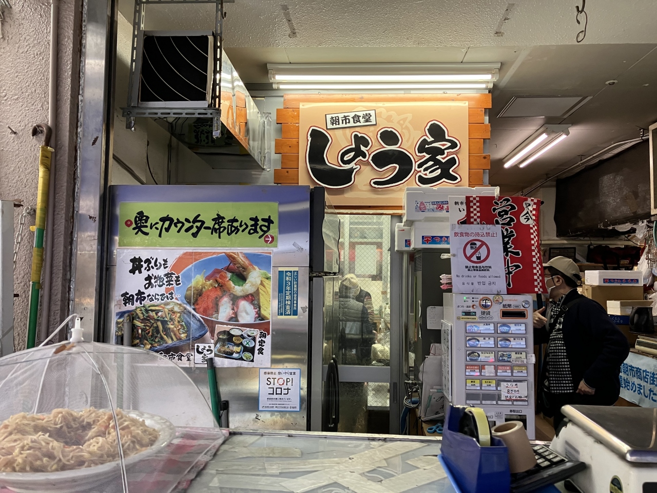 中に市場食堂がカウンターだけで