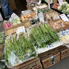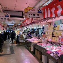 道沿いは野菜類、建物中は魚介類の店が