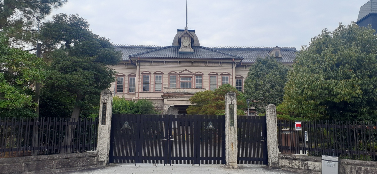 津山高等学校というおそらく地元の名門高校内に現在も残る校舎です。