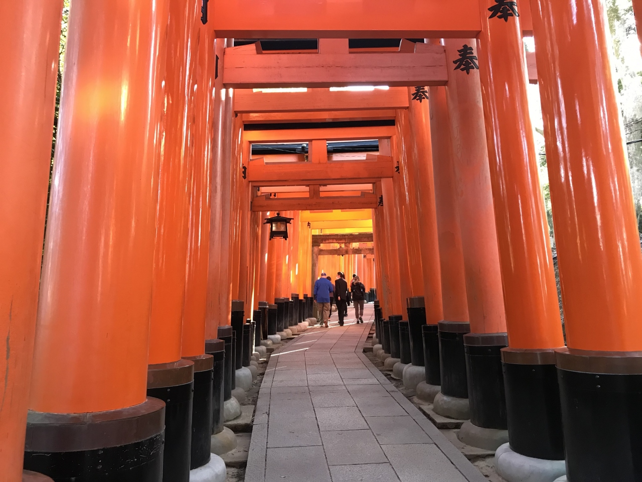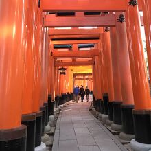 伏見稲荷大社でも最も人気がある観光スポットと言えます。この神社の見所の一つは、本殿の背後にある鳥居のトンネルです。鮮やかな朱色の景観はいつ見てもとてもきれいで見る人の心を引き付け、感動を与えてくれます。京都には何度訪れても素晴らしいと感じられる場所がありますが、この千本鳥居もその一つです。千本鳥居へは歩きやすい服装で参拝することをおすすめします。