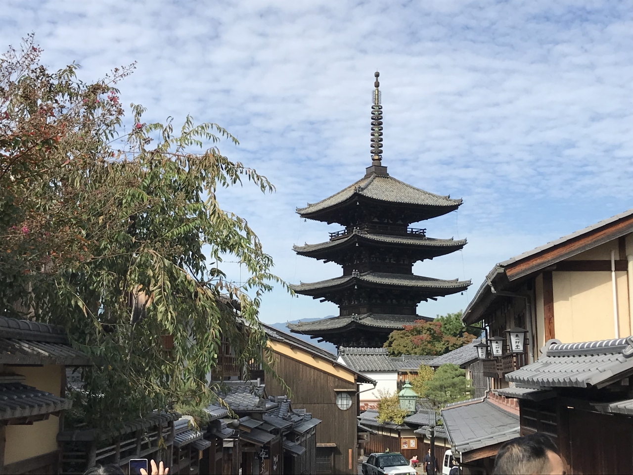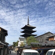 産寧坂は、東山の観光地として有名な場所です。多くの観光客が八坂神社と清水寺との往来として行き来しています。私は八坂の塔を少し上った辺りの産寧坂から、八坂の塔と京都市内を見渡す景色がとても好きでよく産寧坂を利用しています。産寧坂を上る方は気づかず行ってしまいますが、下って来た方は必ずと言っていいほど写真を撮る光景を目にします。また産寧坂にある青龍苑の庭にもよく立ち寄って景色を楽しみます。
