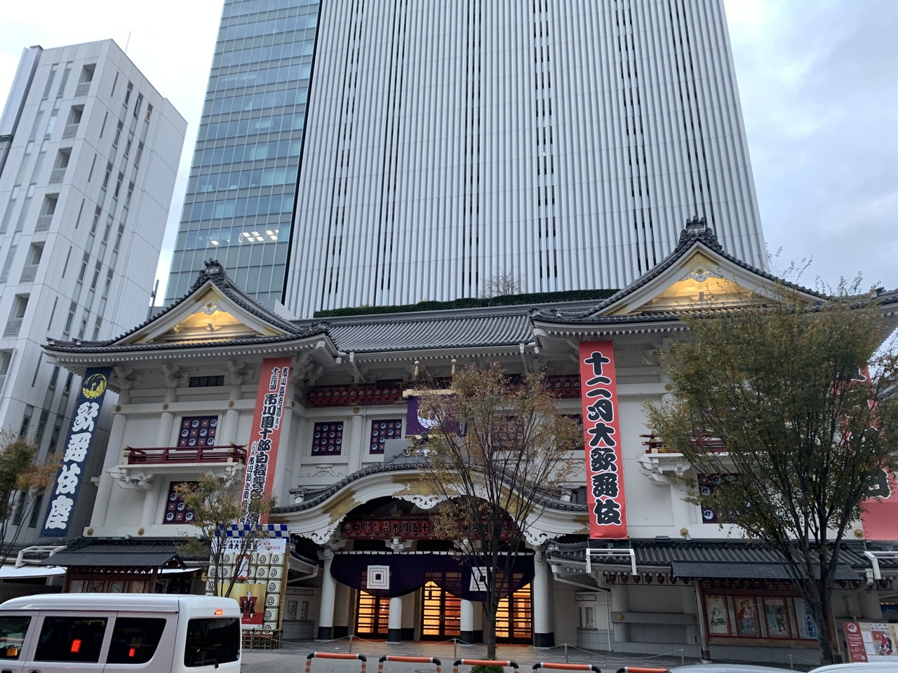 何度か改築が行われ、今は純和風の建物の歌舞伎座と、
