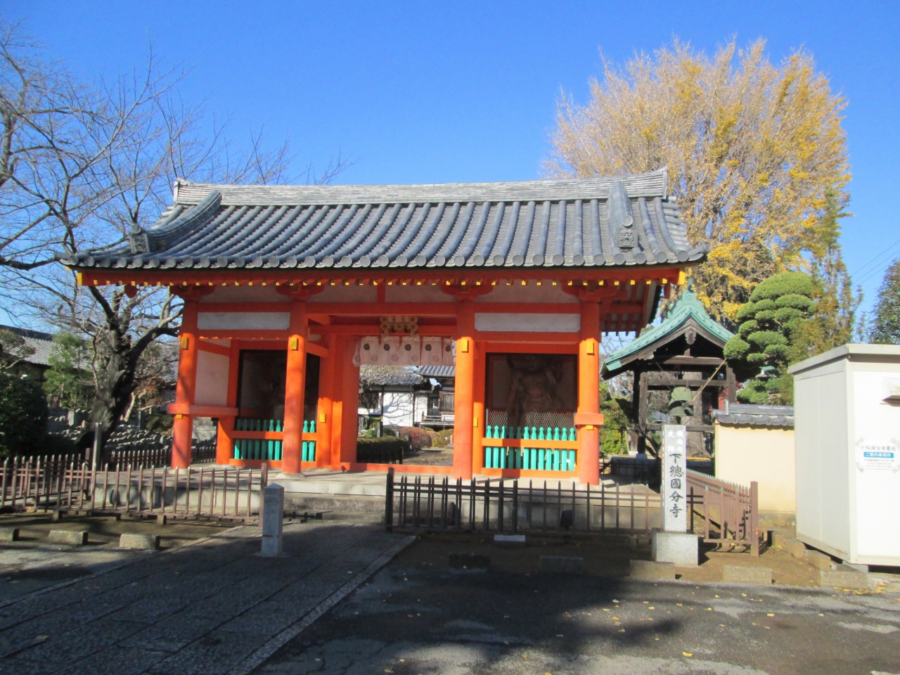 真言宗豊山派の一寺で、奈良時代に立てられた下総国分寺の後継寺院であるが、下総国分寺以降の変遷は不明。現国分寺は旧国分寺跡に昭和初期に建立されました。国指定史跡下総国分寺の石碑、仁王像、南大門、宝篋印塔本堂、鐘楼、准四国霊場予州国分寺写石柱、市川七福神の毘沙門天像、十九夜塔、本堂、本堂前に旧国分寺礎石、清滝権現、旧国分寺の金堂・講堂の基壇等見るものが多くあり飽きさせません。朱色の復元南大門が目を惹きます。また礎石を見ると立派な堂宇があったことが想像できます