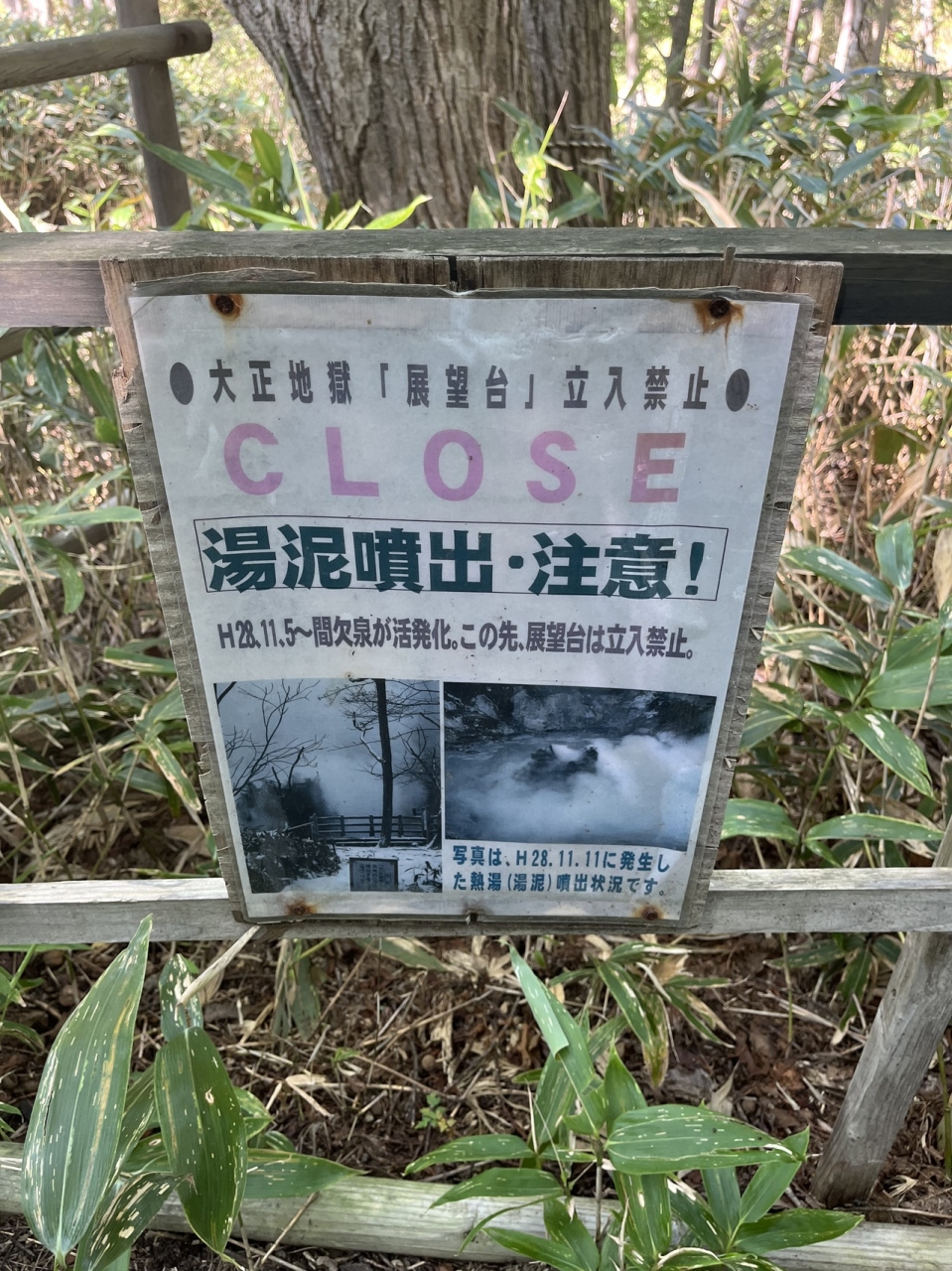 登別の地獄谷から大湯沼や足湯方面へと続く散策路の途中に大正地獄という源泉がありますが、泥湯の噴射の懸念があるため、2016年頃から立ち入り禁止になっています。2022年現在もリスクが低減していないということで外から見ることしかできない状態です。