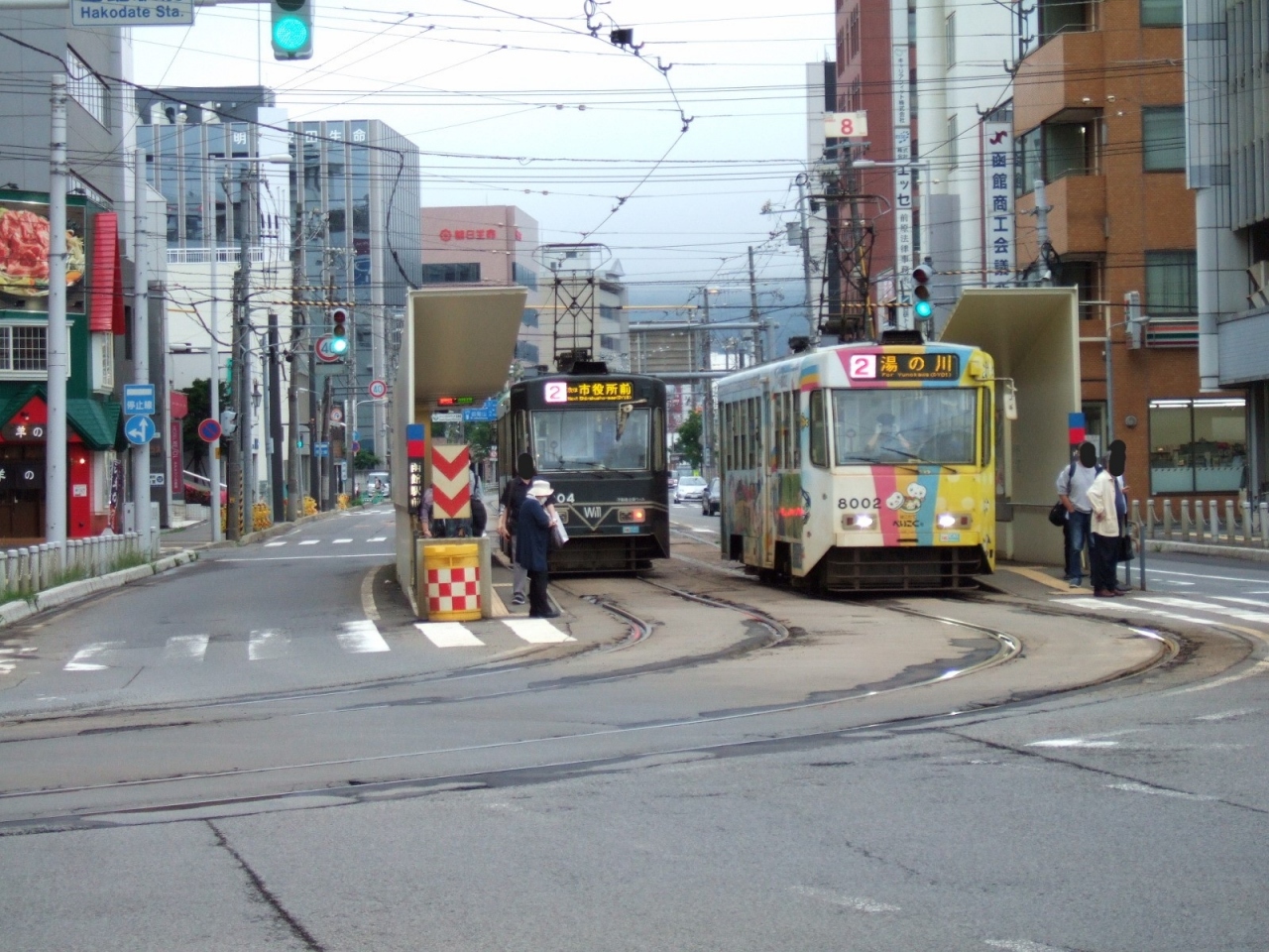 函館駅前から、ベイエリア方面と湯の川方面に伸びている函館市電。