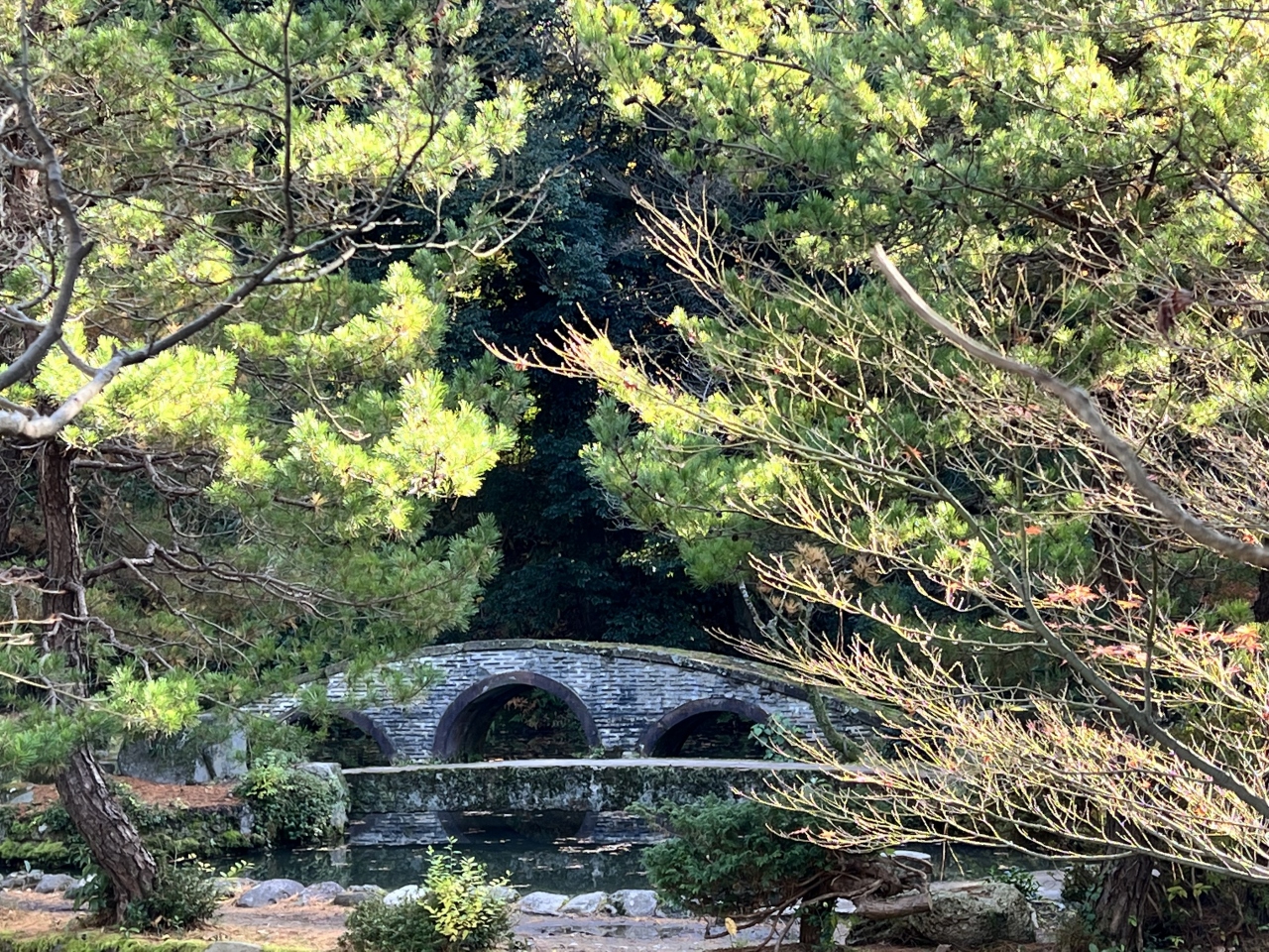 11月の来訪だったが、あまり紅葉しておらず、緑々しい。見ごたえというより、感じるお庭だった。