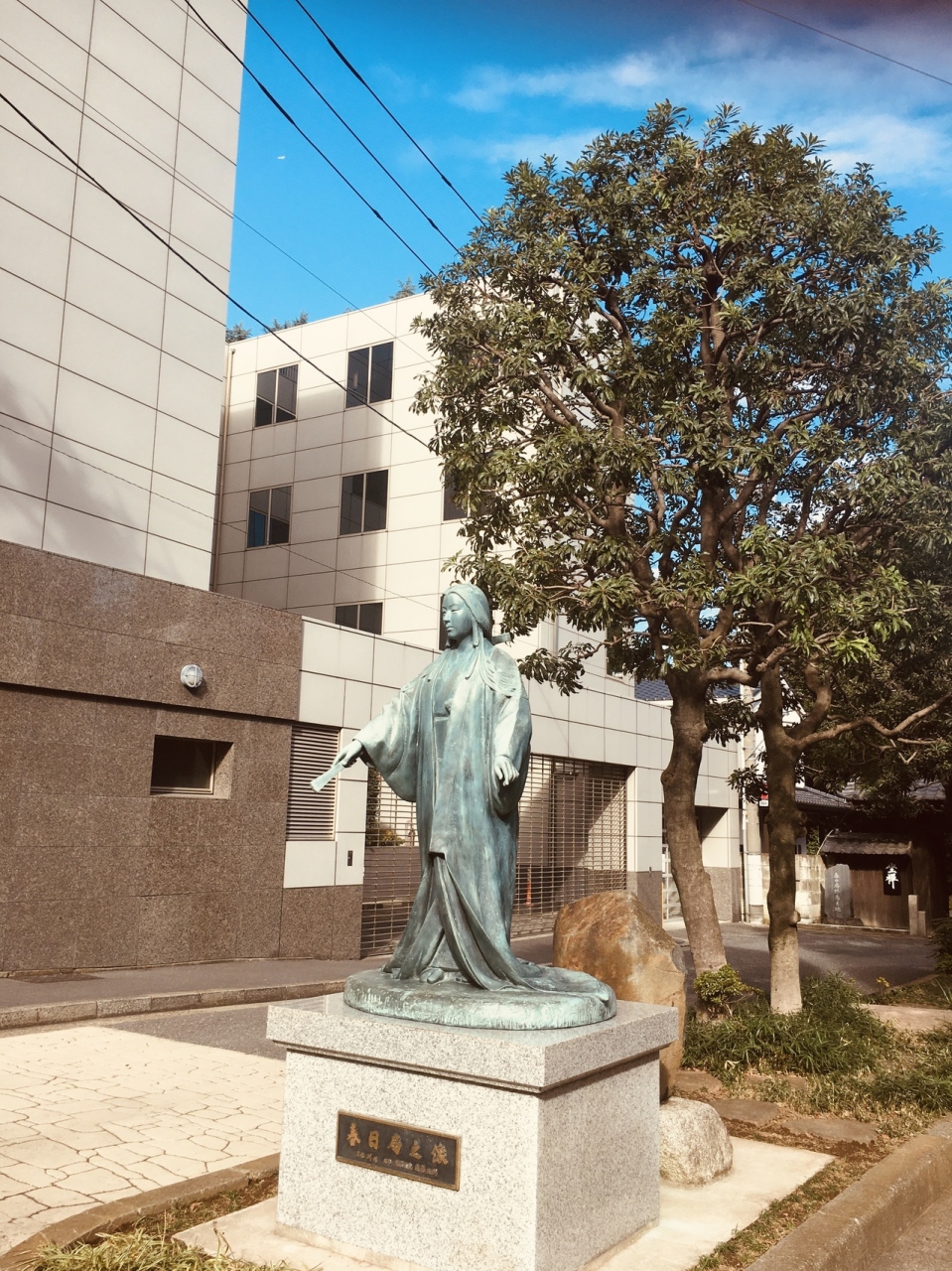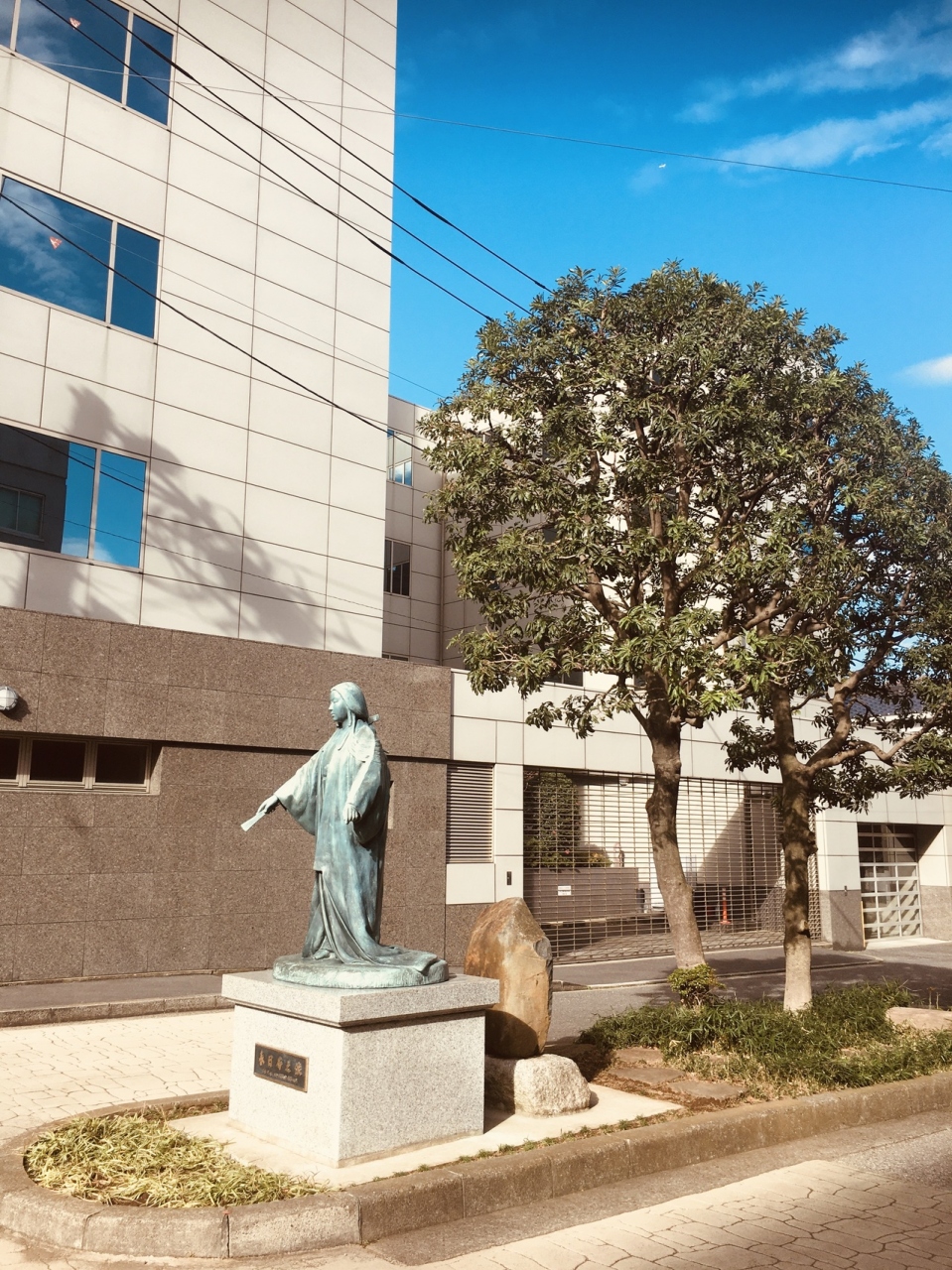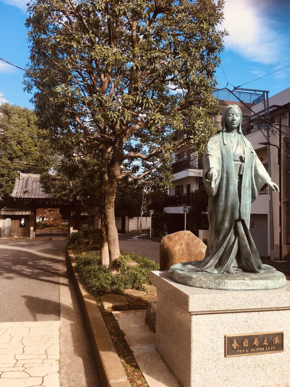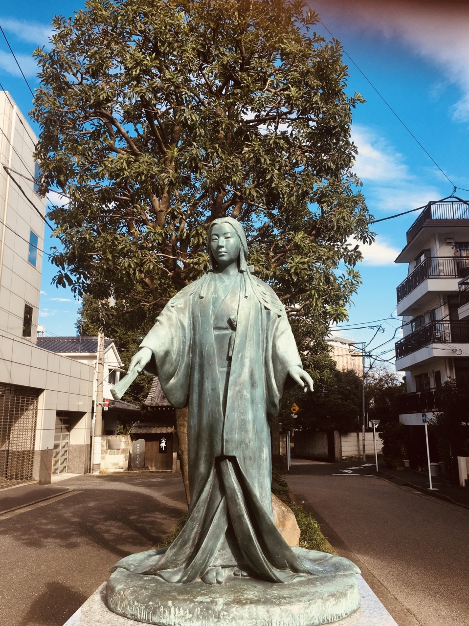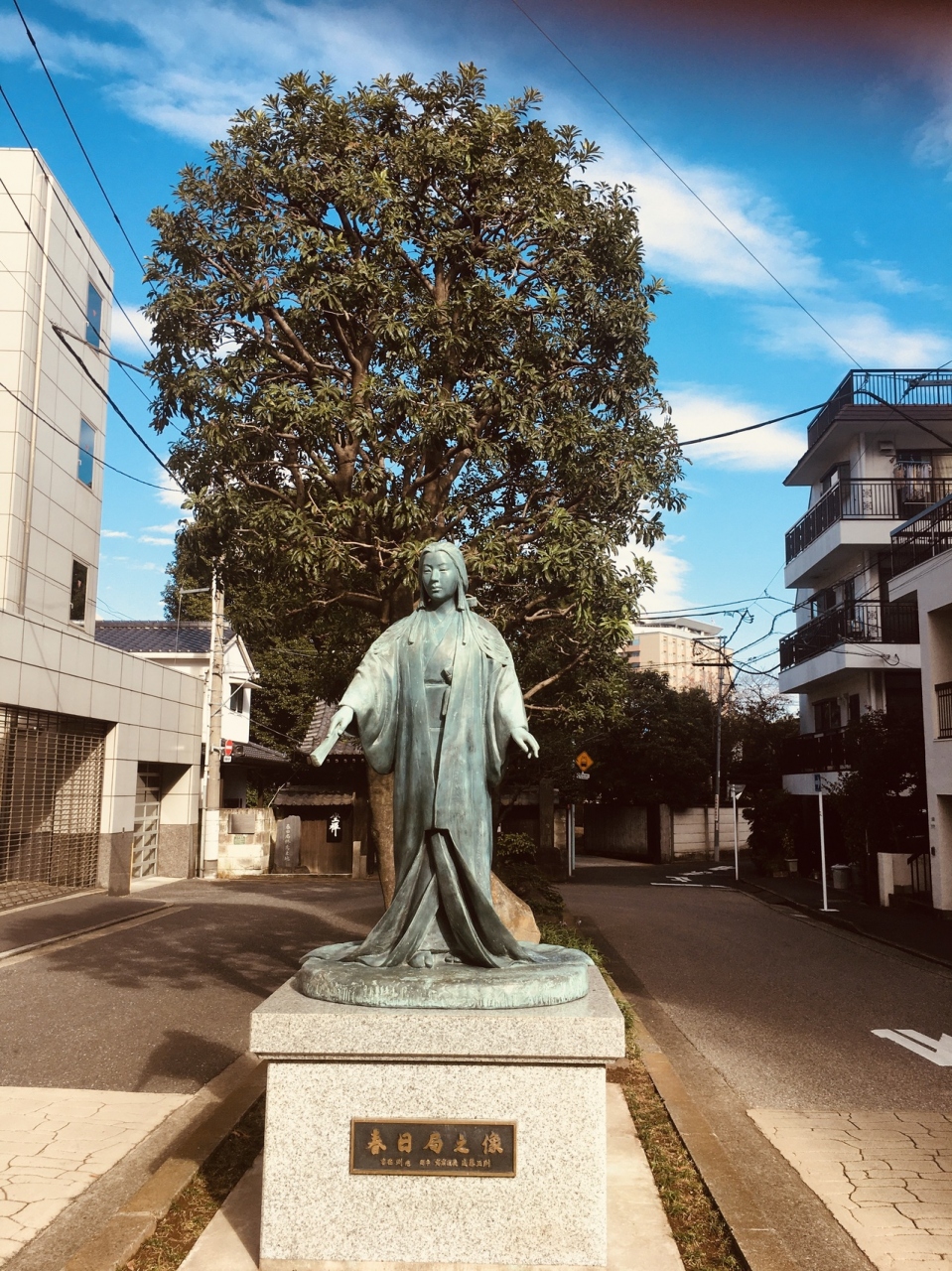大通り沿いを歩いていると小さめの着物を着た像がありました。右手には扇子を持ち、台座に乗っかっていました。台座の裏側には文京区・春日局と記載してあり説明文があります。麟祥院の門前にあり、境内には春日局のお墓もあります。