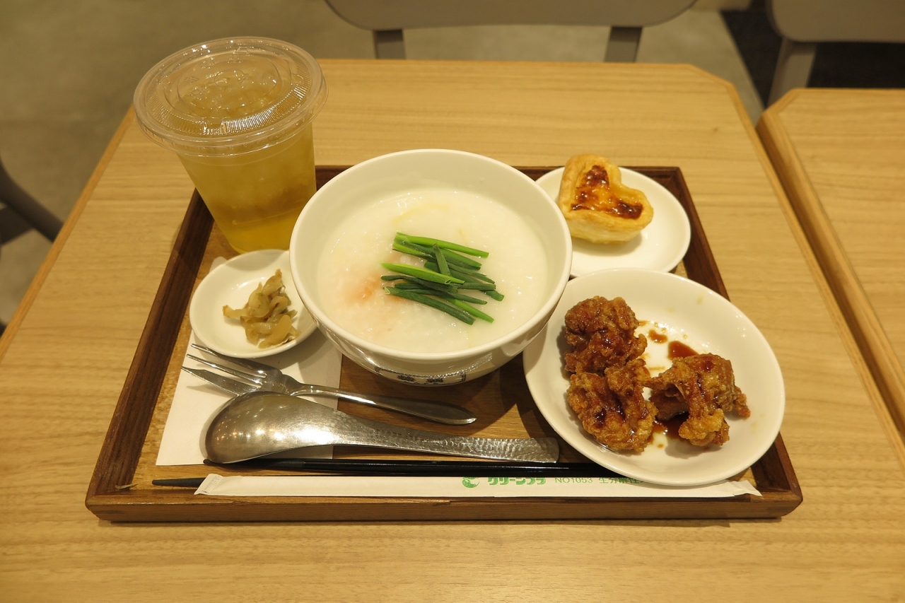 - 糖朝カフェメニューの海老生姜粥・ジャスミンティー・油淋鶏はおいしかったですし、エッグタルトは絶品でした