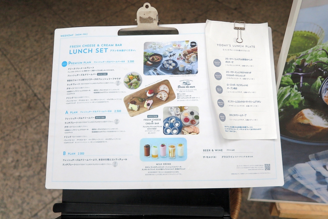 牛乳といえばタカナシの低温殺菌牛乳、そう決めている私にとって、タカナシブランドのレストランはとても魅力的なのですが、お店を通るたびにお客さんがいっぱい、それも圧倒的に女性の姿が多く、なかなか入店がかないませんでした。しかし今回は平日の11時過ぎ、店内のお客さんは1組のみ、チャンス!と思って入店。シンプルで清潔感のある店内はセンスの良いものでした。もちろんランチセットの料理・飲み物すべてタカナシらしい高品質を感じられ、大変に満足のいくものでした。