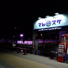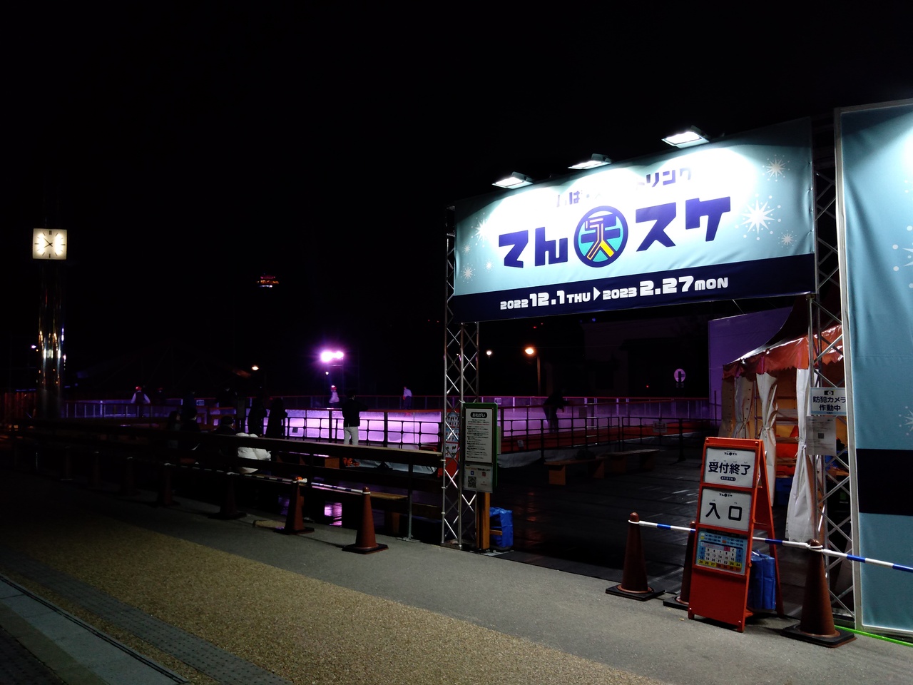 てんしば横に去年はなかった臨時の小さいスケートリンクが設営されていました。靴代込で1600円はちょっと高い感じです。夜は紫色にライトアップされます。平日は午後6時、土日祝は午後8時終了なので注意が必要です。