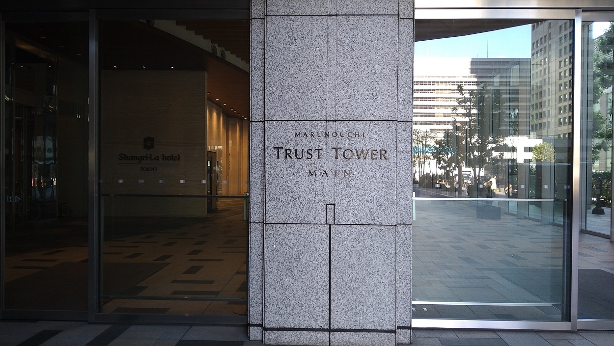 東京駅八重洲側駅前の2棟のオフィスビルです。丸の内トラストタワーという名前ですが、丸の内口より八重洲口の方が近いです。トラストタワー本館とN館があります。本館は37階建てで上層階はシャングリラホテル。N館は2003年に竣工した19階のビルです。共に1階と2階は店舗になっていて、有名なレストランも数多く出店しています。N館1階にあるティアイシートウキョウの写真とビル外観の写真を投稿します。