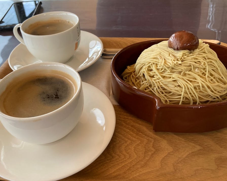 恵那峡から近く、人気の「栗一筋」のでっかいモンブランを注文しました。¥1300です。