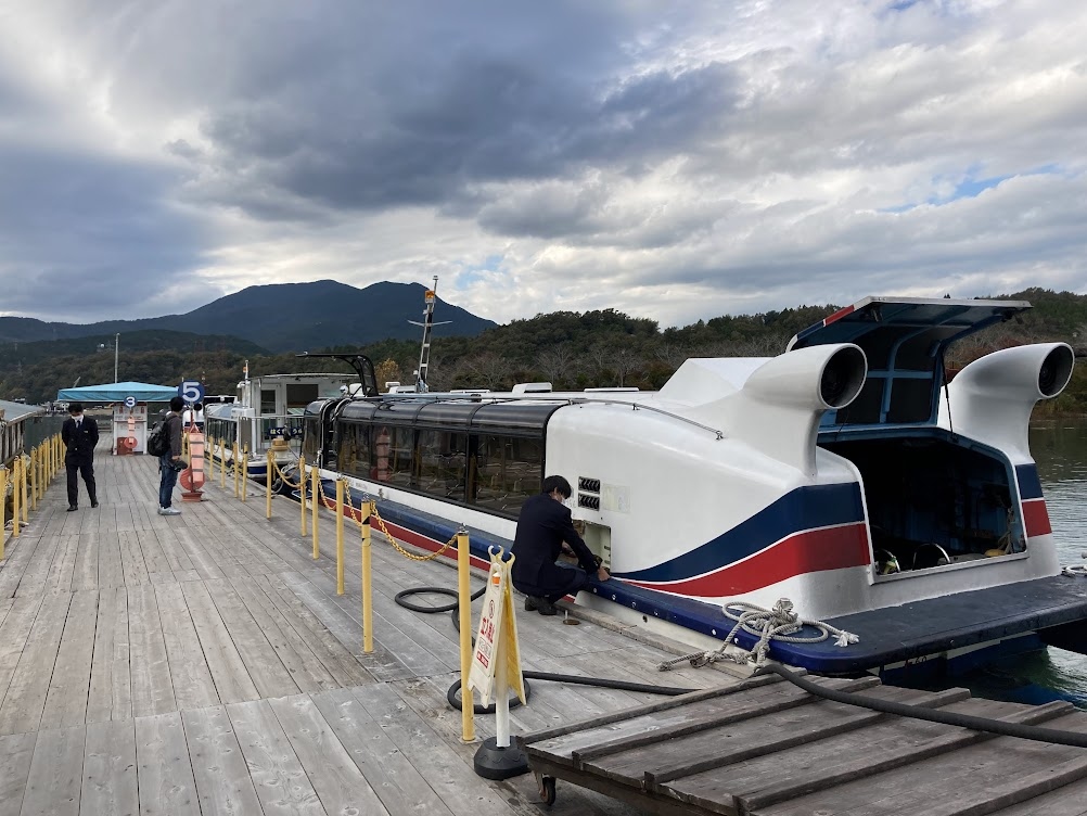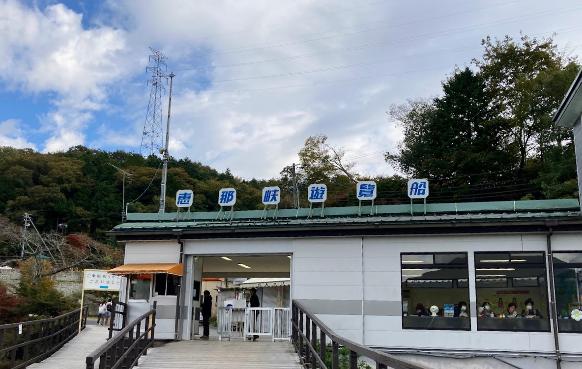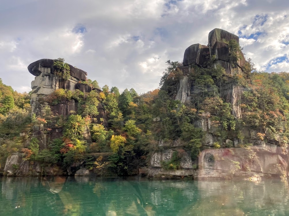 10月末、紅葉は、少し色付き始めたくらいで、まだまだでしたが、遊覧船に乗って、ゆっくり眺める景色はなかなかでした。往復20Km。乗船時間は30分のクルージングです。