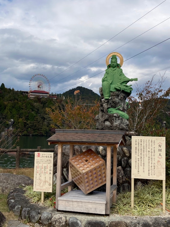 恵那峡公園の弁天島にある弁財天に「光るさいせん箱」がありましたが、光るのは日没からのようです。